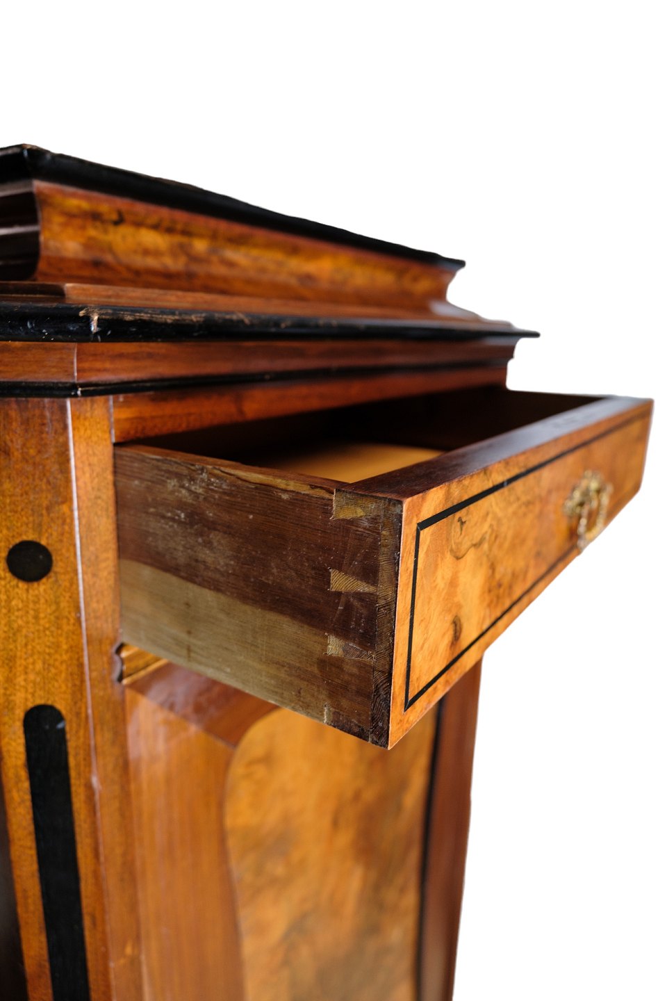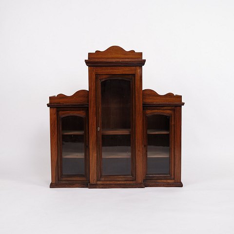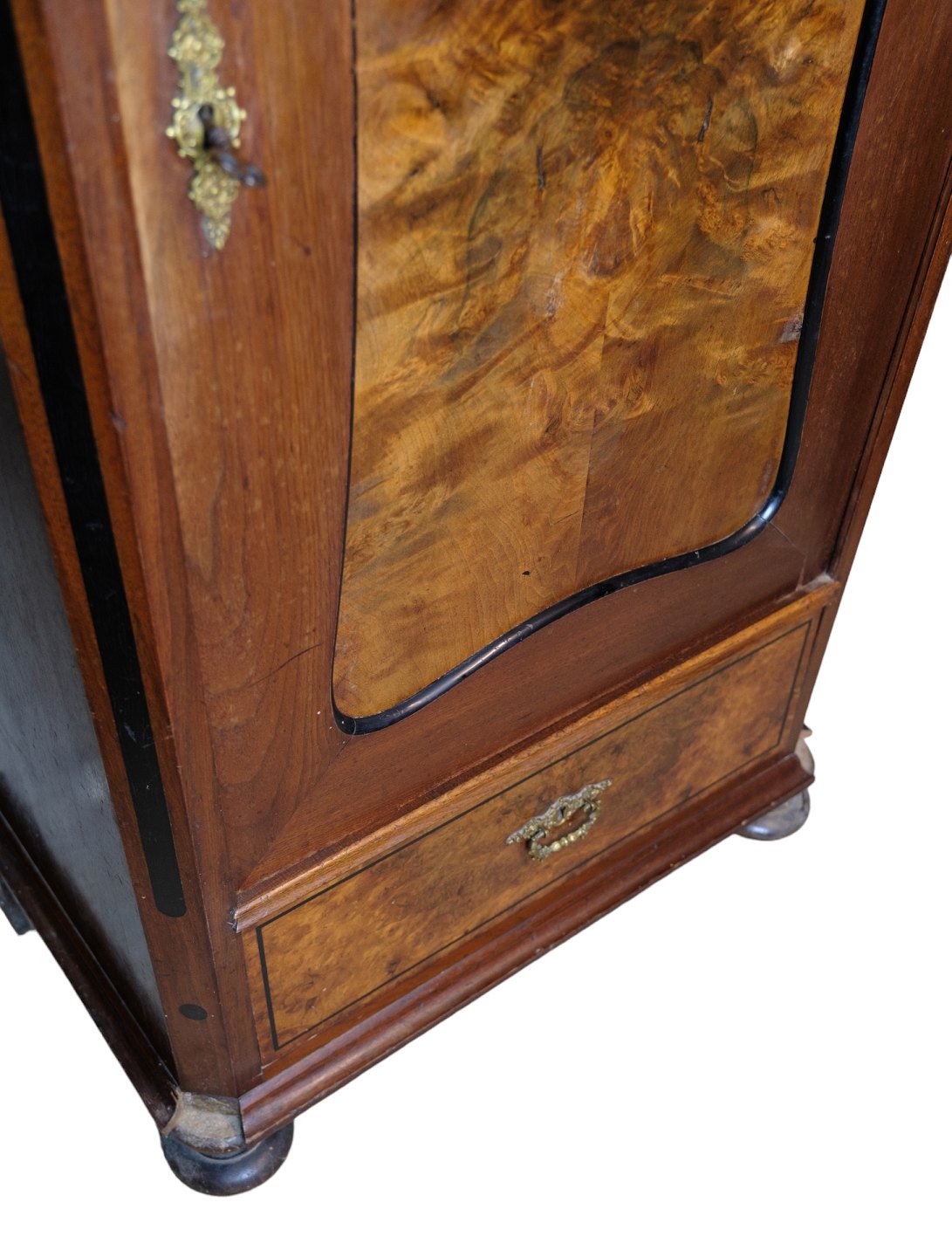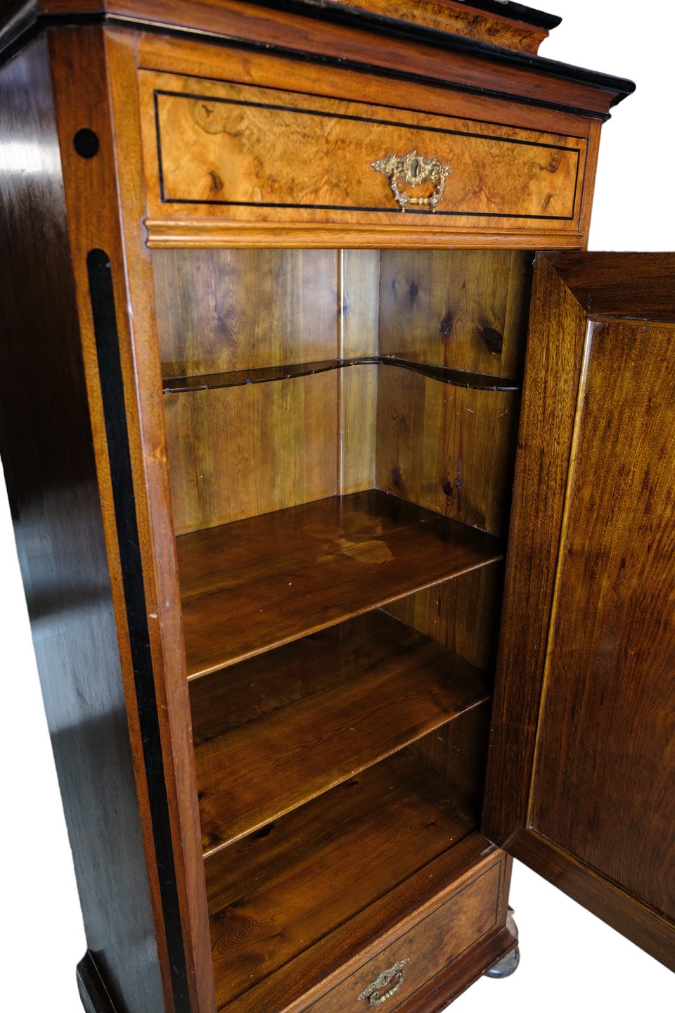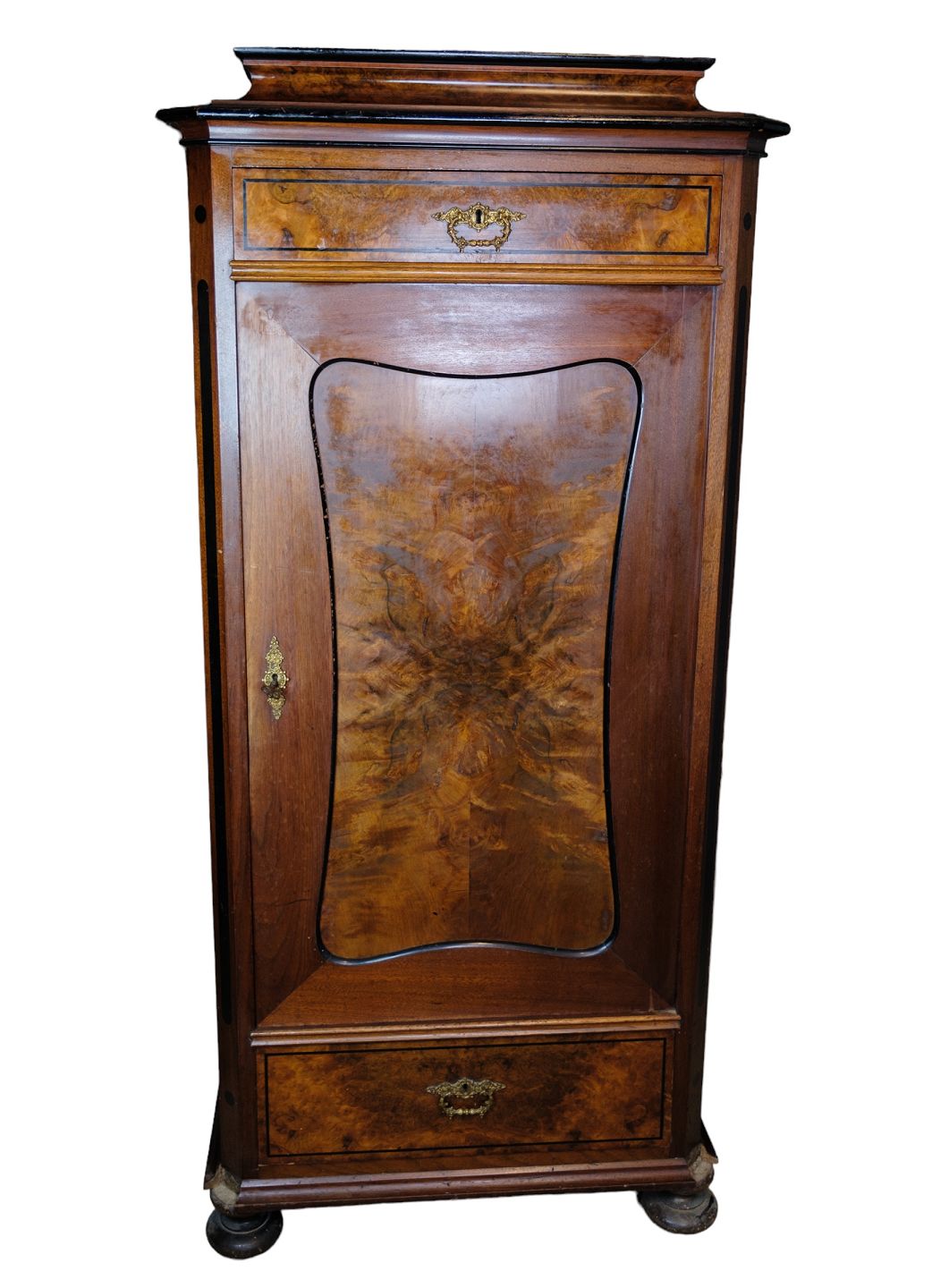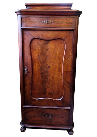 Højt skab af poleret valnød flot antik stand med 2 skuffer og en låge med hylder fra 1850'erne