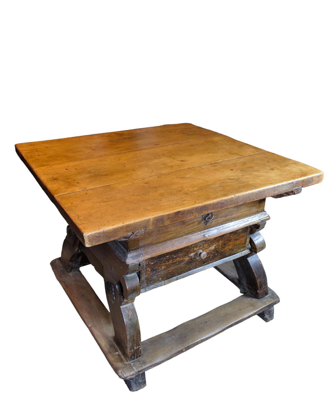 Please contact us for price informationSwiss cheese table in oak with a secret compartment under the tabletop hidden by a drawer from the 1720s.