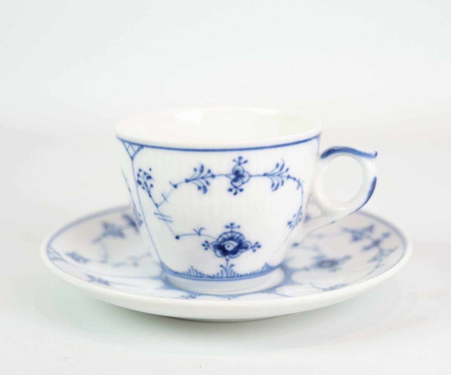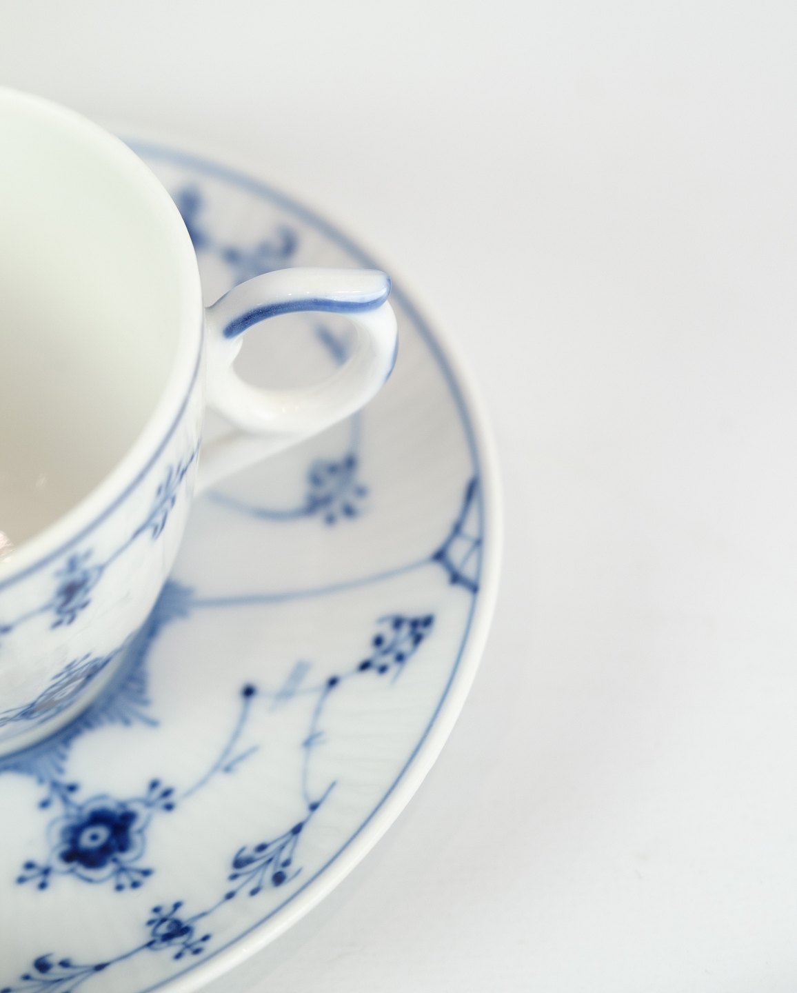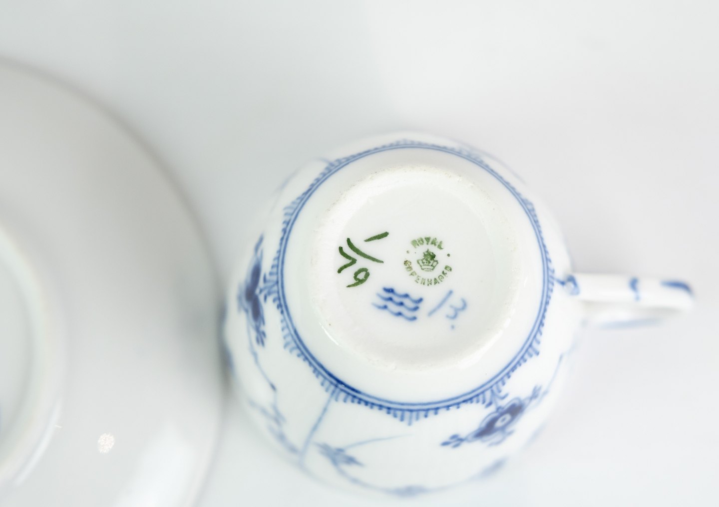 Royal Copenhagen Musselmalet Riflet is an iconic series of porcelain that has enchanted generations with its timeless design. The large coffee cup in this series, with decoration number 1/79 with accompanying saucer no. 79-82, which is a wonderful addition to any porcelain collection.