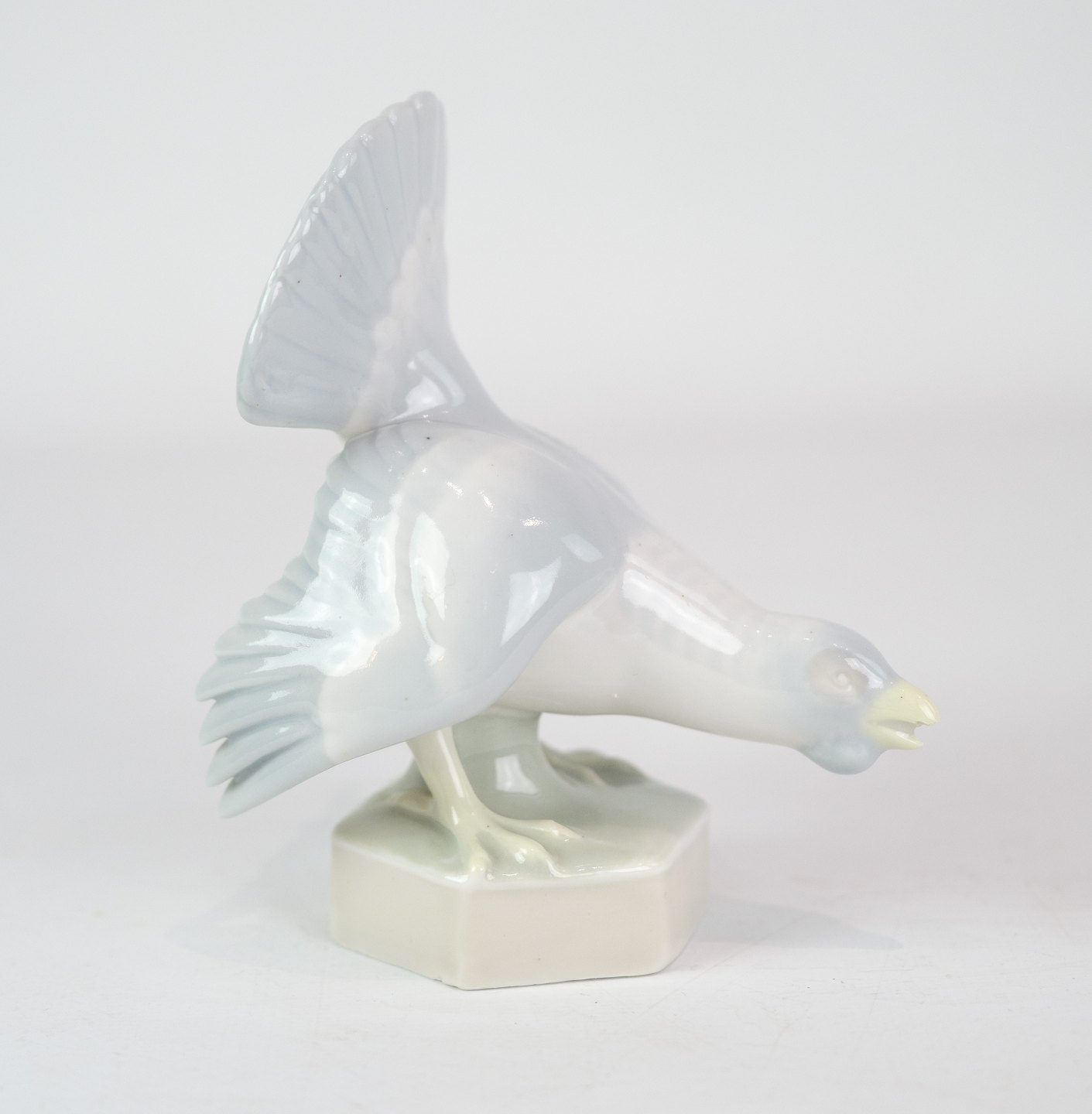 Figur af porcelæn med motiv af en rovfugl på vej til at flyve efter sit bytte.