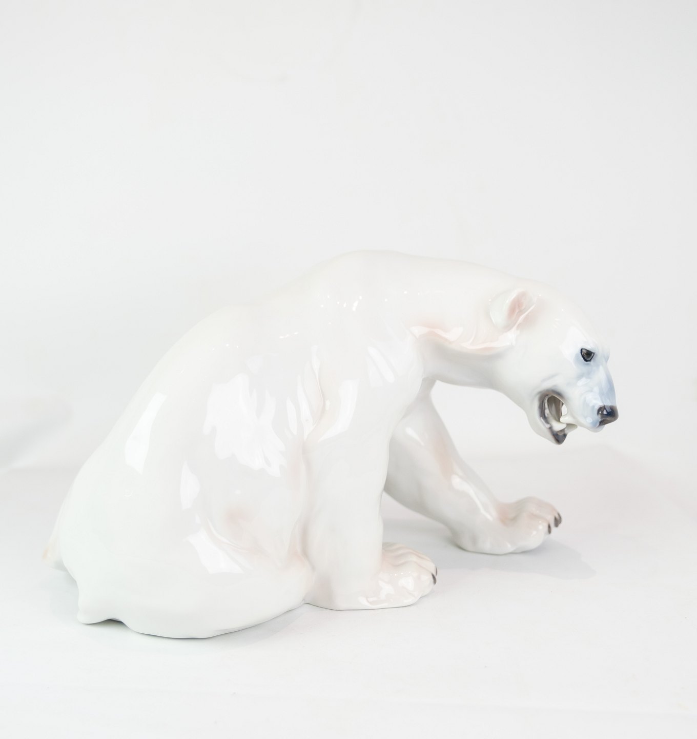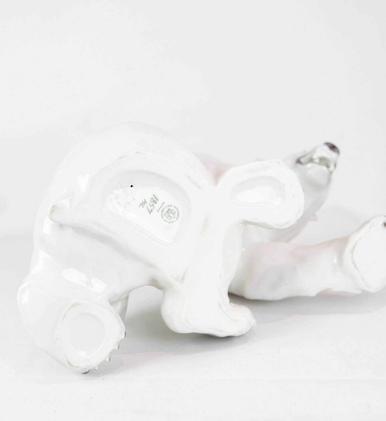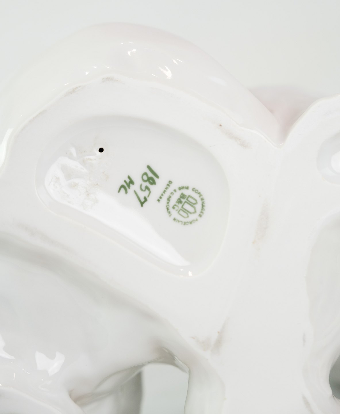 SoldBing & Grøndahl (B&G) The Polar Bear with number 1857, also known as "Big Polar Bear" or "Knud Kyhn Polar Bear," is an impressive porcelain figure designed by the renowned Danish ceramist Knud Kyhn. This figure is often related to Bing & Grøndahl and Royal Copenhagen, as Royal Copenhagen later took over Bing & Grøndahl.