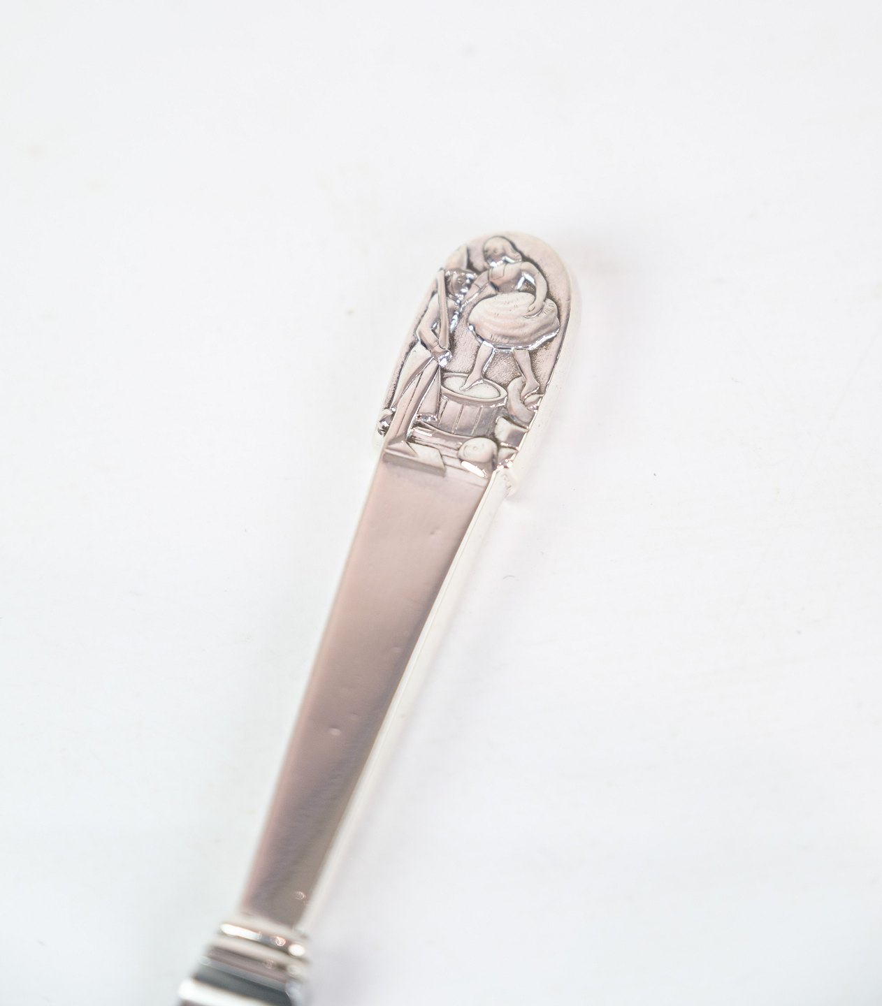 Dette særlige bestik er i en pæn, brugt stand, fri for indgraveringer, hvilket tilføjer til dens sjældenhed og værdi. Det er ikke bare et sæt bestik; det er et kulturelt kunstværk, der bringer Andersens fortællinger til livet i enhver børns eller samlers hænder.