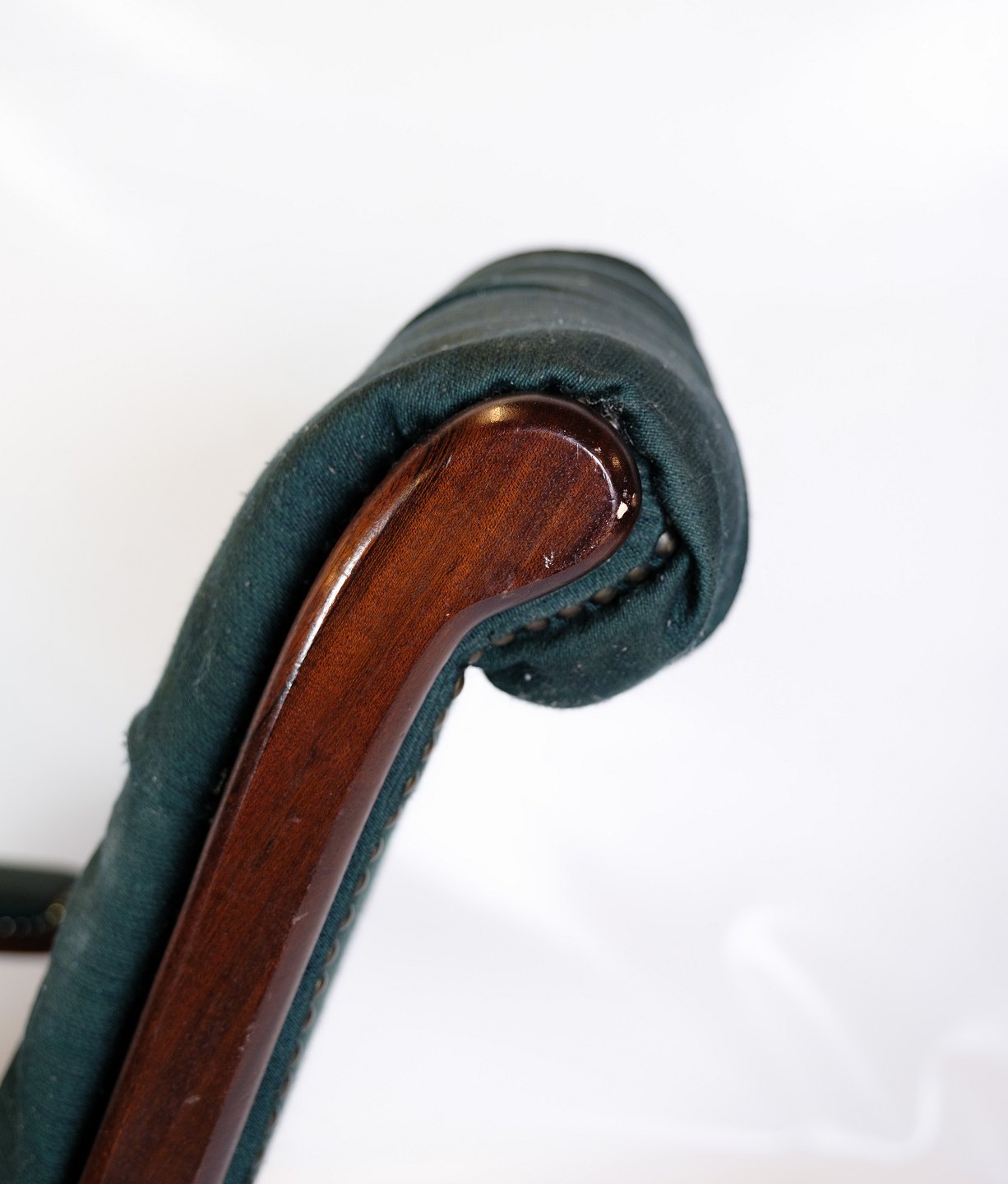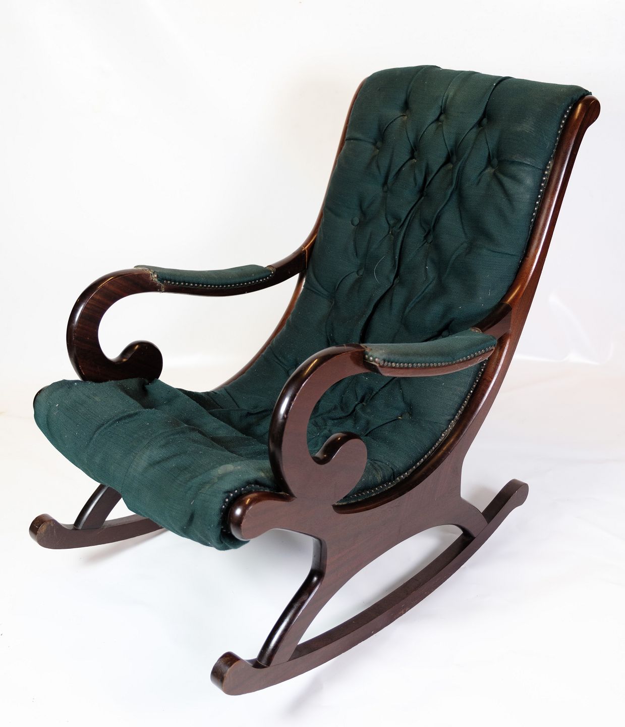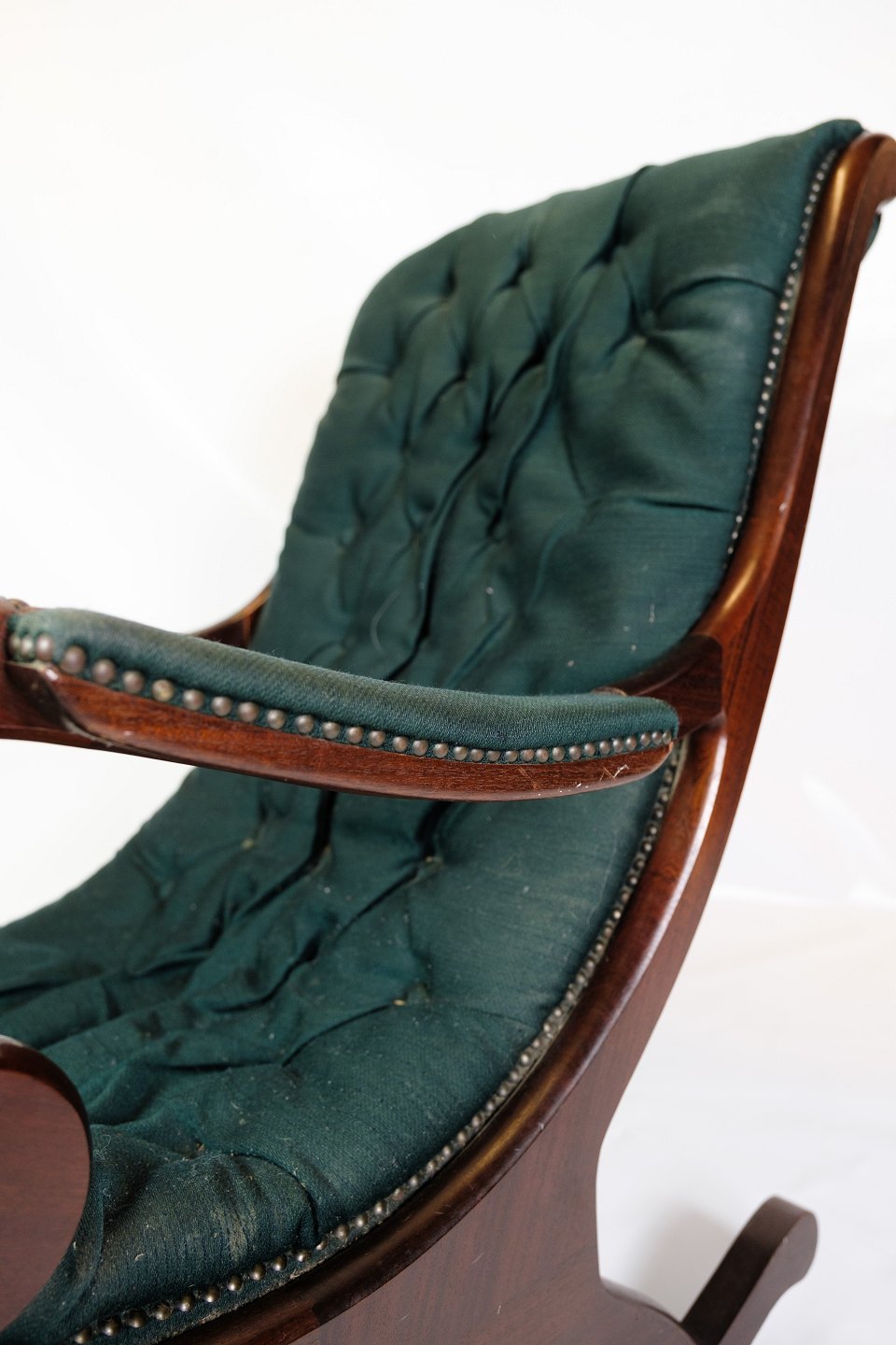 Rocking chair with green wool tuft made in mahogany from around the 1930s.