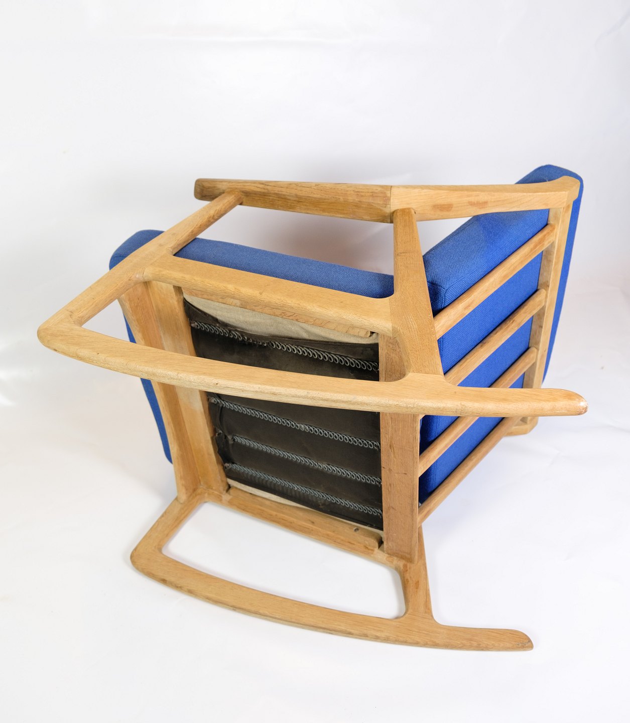 Med sit elegante og strømlinede design er gyngestolen et symbol på den skandinaviske modernismes tidløse stil. Den er konstrueret af robust egetræ, hvilket giver både styrke og en naturlig skønhed til møblet.