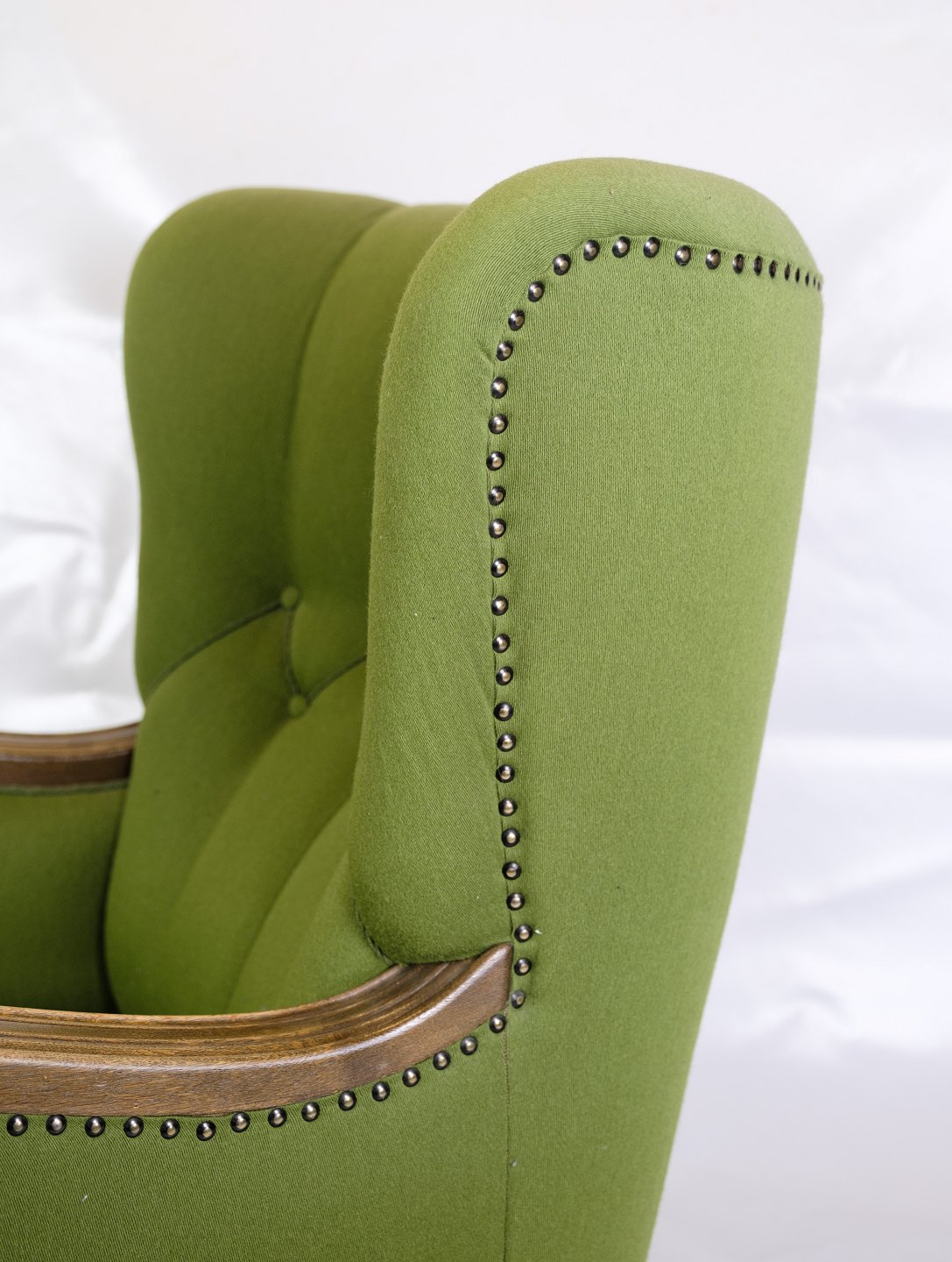 This chair represents the elegance of the Renaissance style with its green upholstered fabric that adds a sense of luxury and classic charm. The handcrafted wood carvings are a masterpiece in themselves and adorn the chair with fine details and aesthetic beauty.