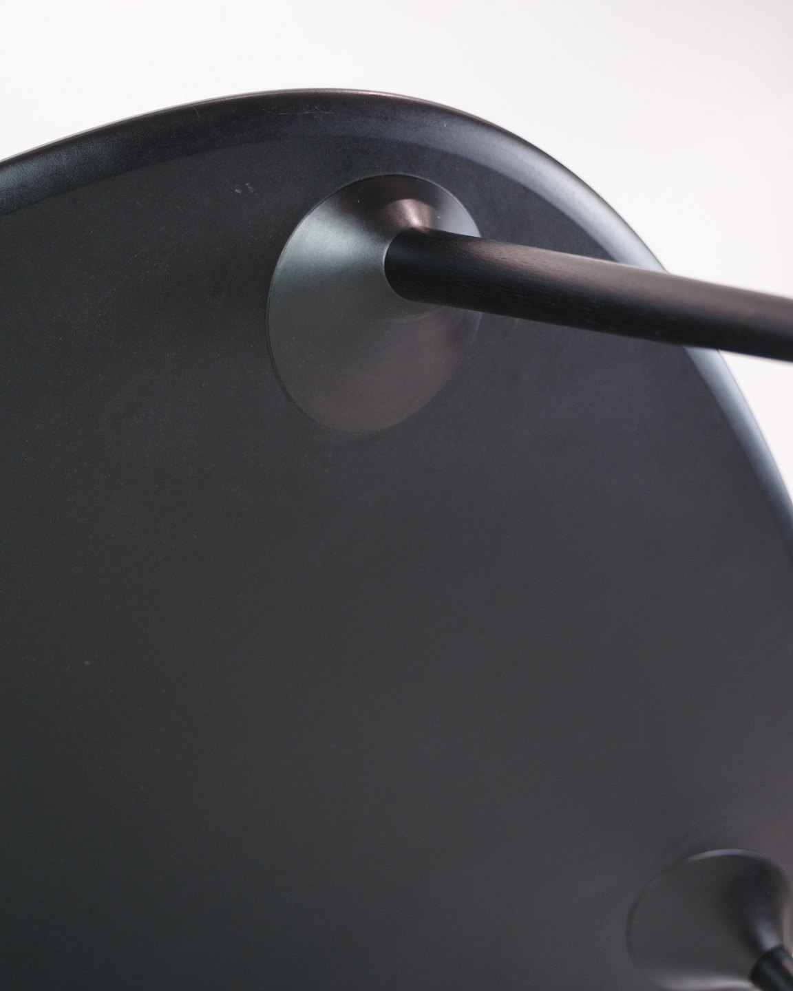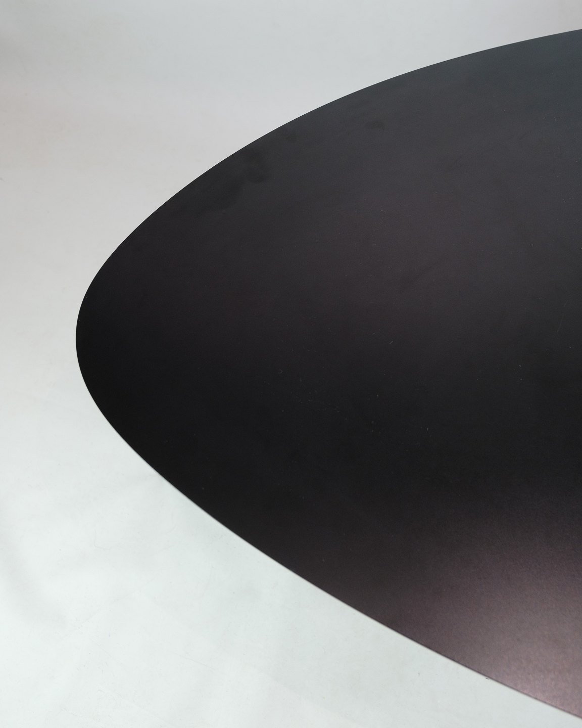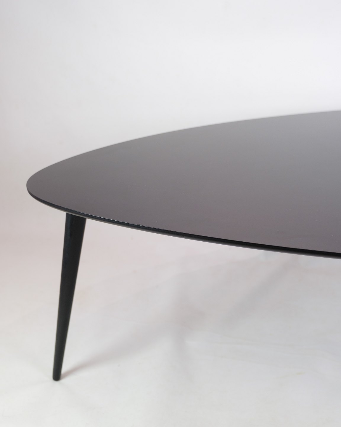 The coffee table with black laminate and oak legs, designed by Thomas Pedersen and produced by Fredericia Furniture, is an elegant combination of modern aesthetics and craftsmanship. This table has been created with a focus on both function and style.