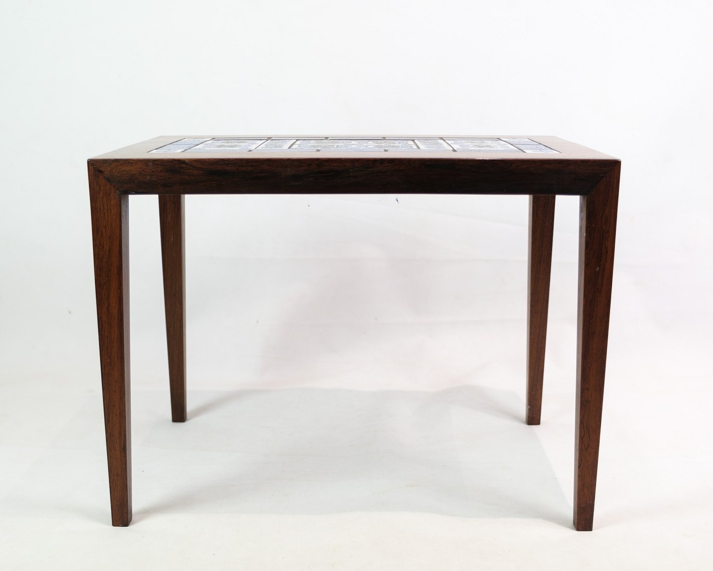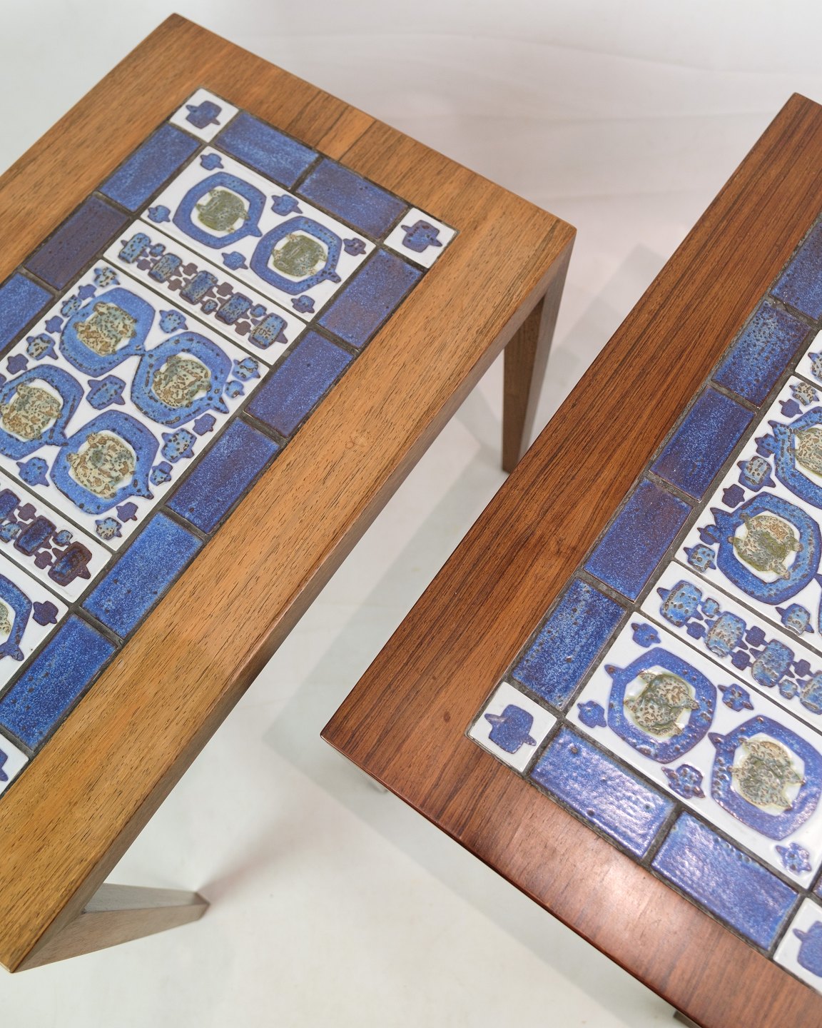 Set of side tables, model 34A, in rosewood designed by Severin Hansen with tiles from the Royal Porcelain Factory, produced around the 1960s. These side tables represent a beautiful combination of quality materials and Danish design heritage. The rosewood gives a warm and luxurious feel, while the tiles from the Royal Porcelain Factory add a touch of elegance. This piece of furniture is not only functional, but also a period piece of art that expresses the design of that era. A unique collector's item for those who appreciate vintage furniture art and Danish design history.