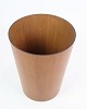 Teaktræets varme toner giver en subtil elegance til denne praktiske genstand. Designet, typisk for svensk design fra 1960'erne, er præget af rene linjer og funktionelt formsprog. Papirkurven viser også den håndværksmæssige omhu, der var karakteristisk for den nordiske designtradition.