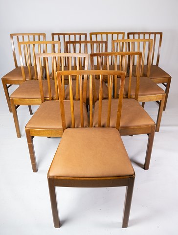 Dette sæt består af fire ikoniske "Syver" stole designet af Arne Jacobsen og produceret af Fritz Hansen i 1960'erne. Stolene er konstrueret af teaktræ og er et fremragende eksempel på dansk møbeldesign fra denne æra.