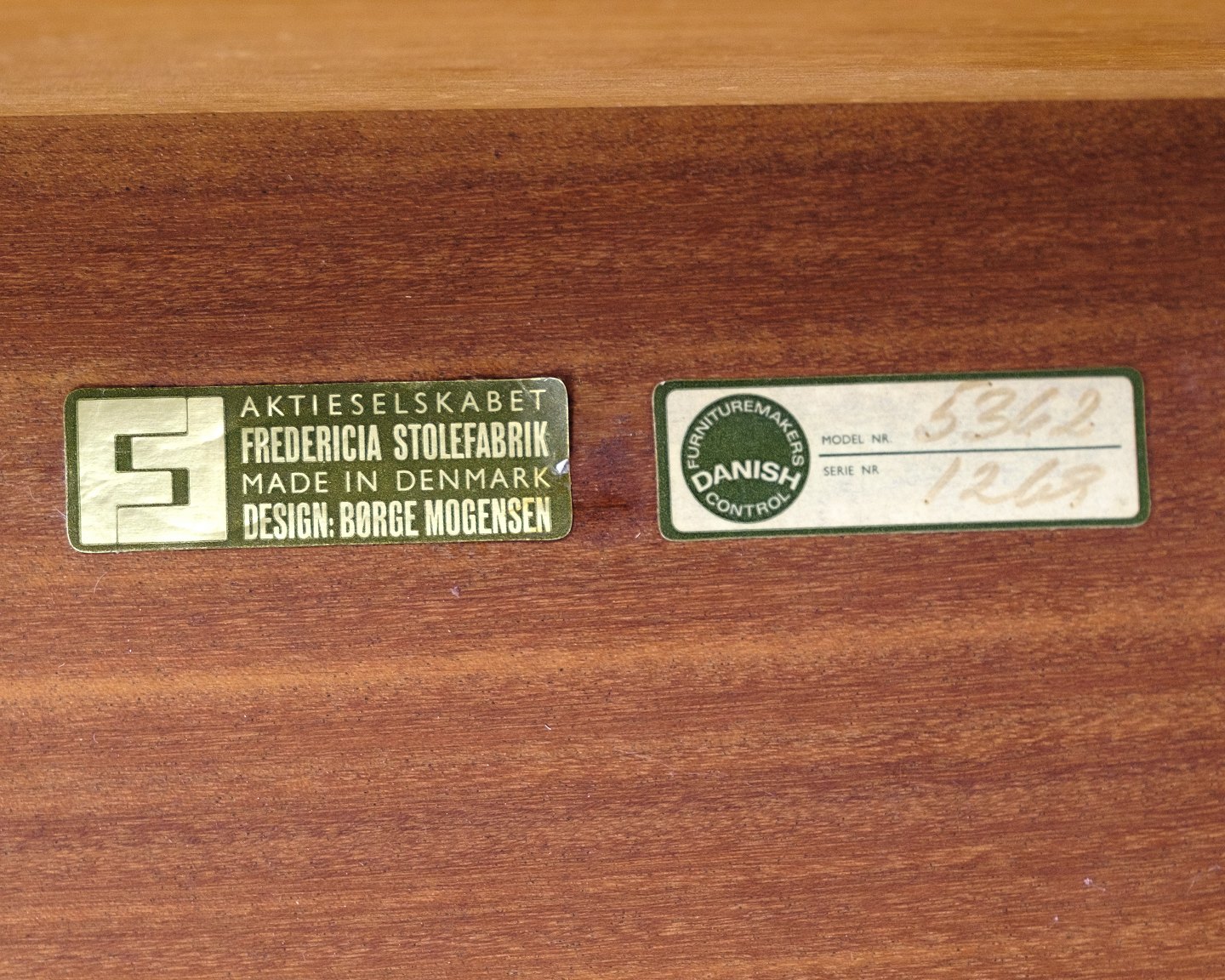 Dette sofabord i mahogni / valnød er model 5362, designet af den berømte danske møbeldesigner Børge Mogensen og fremstillet af Frederica Furniture.