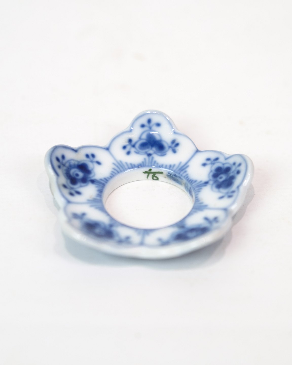 SolgtDenne Royal Copenhagen Musselmalet Riflet lysmanchet, nummer 1/16 og i 1. sortering, er et elegant stykke porcelæn af høj kvalitet. Med en diameter på 6 cm er den velegnet til at holde lys og skabe en hyggelig atmosfære. Musselmalet Riflet mønsteret er en ikonisk del af Royal Copenhagens designarv og er blevet elsket i generationer for sit tidløse og forfinede udseende. Denne lysmanchet er i hel og fin stand, og den vil være et smukt og funktionelt tilbehør til enhver indretning eller borddækning.
