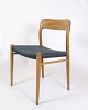 Stolene er udført i egetræ, hvilket giver dem en naturlig varme og tidløs skønhed. Teakens smukke årer og varme farvetoner bidrager til et elegant udtryk, der passer perfekt til ethvert spiseområde.