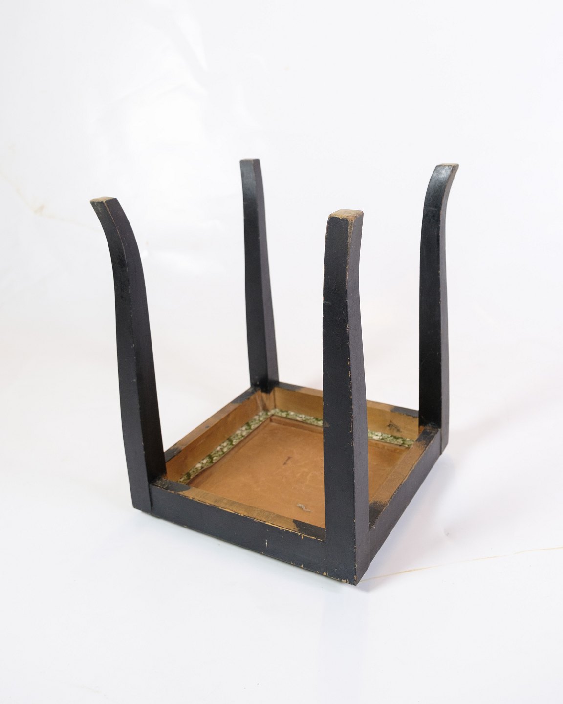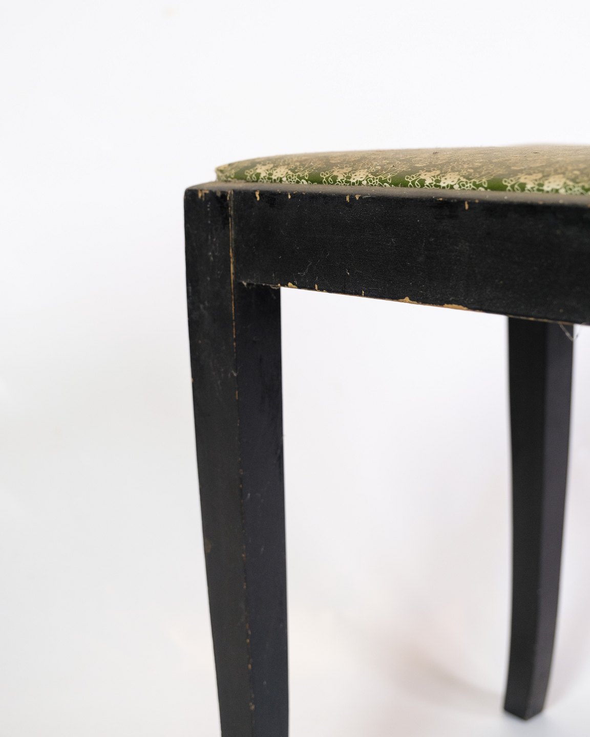 Antik Skammel fra ca. 1920 i sort bemaling. Denne skammel udstråler tidløs charme og historisk elegance. Med sit originale betræk bærer den et unikt præg af sin tid, hvilket giver den autentiske karakter og æstetik.