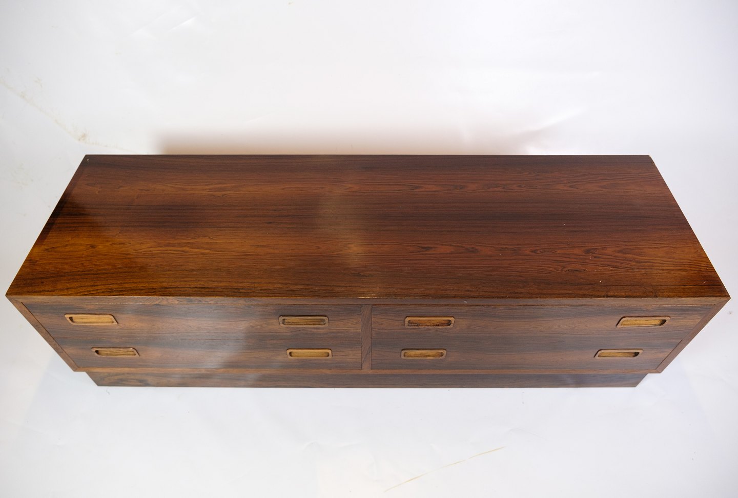 SoldThis chest of drawers is a brilliant example of Danish design from the 1960s, created by Hundevad Møbelfabrik. Crafted from rosewood, this chest of drawers exudes a timeless elegance and simplicity that fits perfectly with any decor.