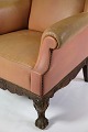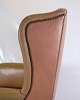 Det mest bemærkelsesværdige træk ved denne stol er dens høje ryglæn og de karakteristiske øreklapper, der giver en følelse af hygge og komfort.