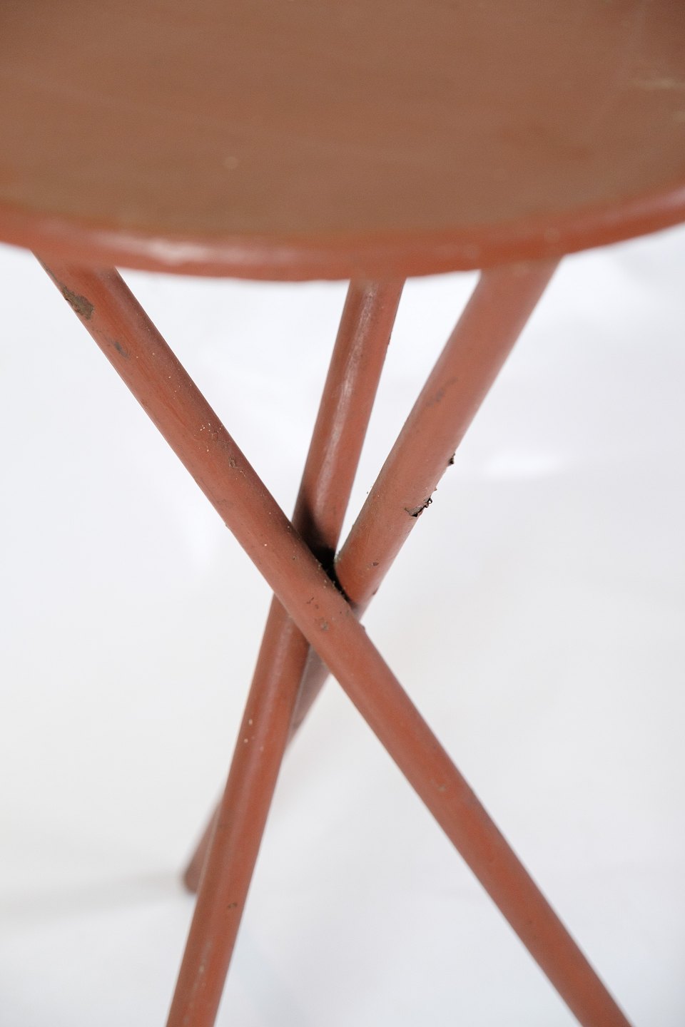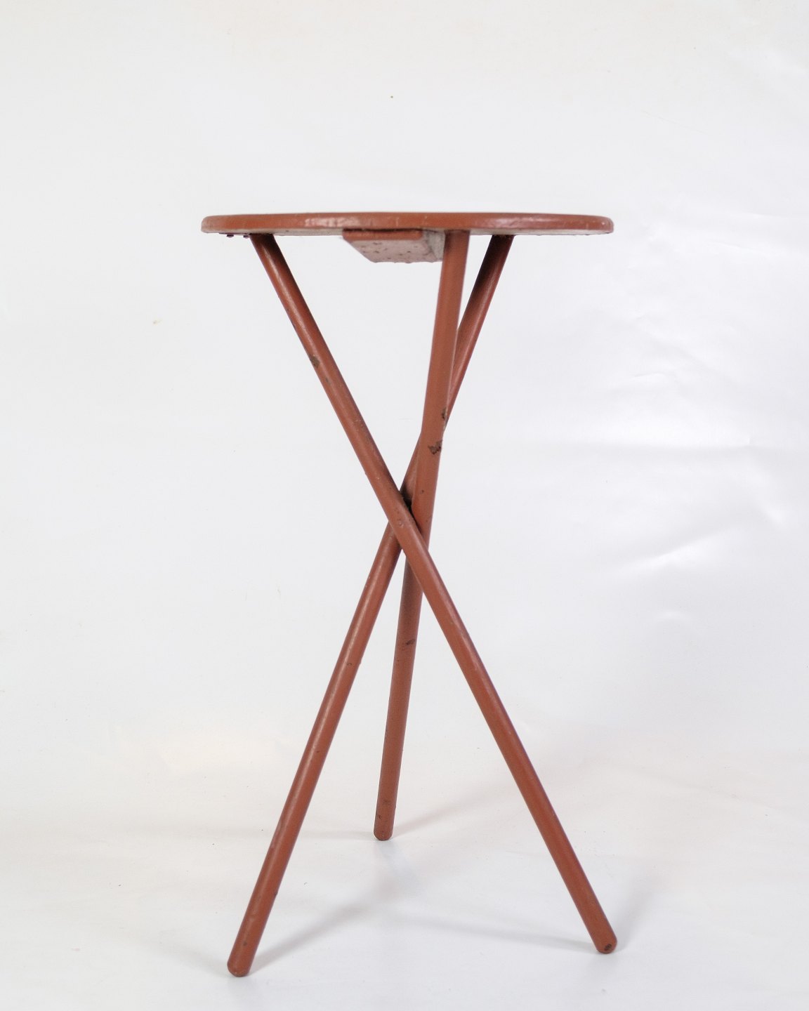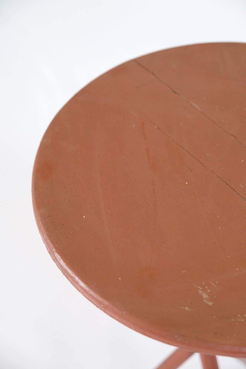 The red painted wood adds a nice contrast to the patinated surface, giving the table a unique and eye-catching look. Its timeless design makes it a beautiful and functional piece of furniture that can be used as a side table in the living room, a bedside table or even as a decorative accent in any room.