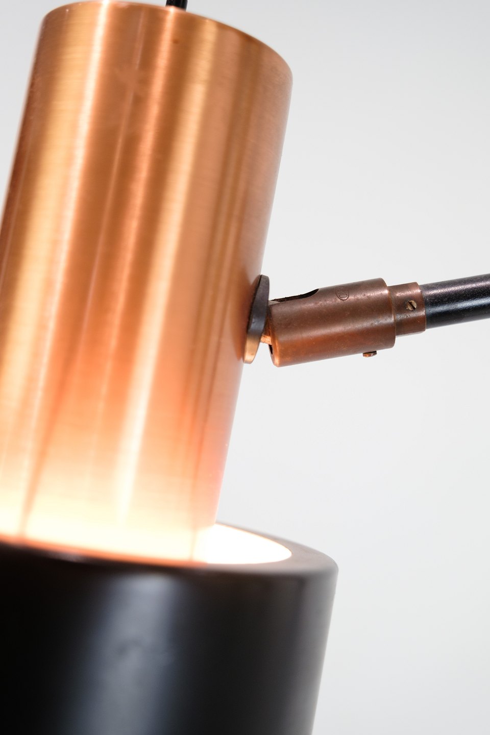 SoldThis floor lamp, known as Model Studio, is a beautiful example of Danish lighting design from the 1970s. The lamp has a black lacquered metal stem with a copper colored base that adds a touch of elegance and warmth to any interior.