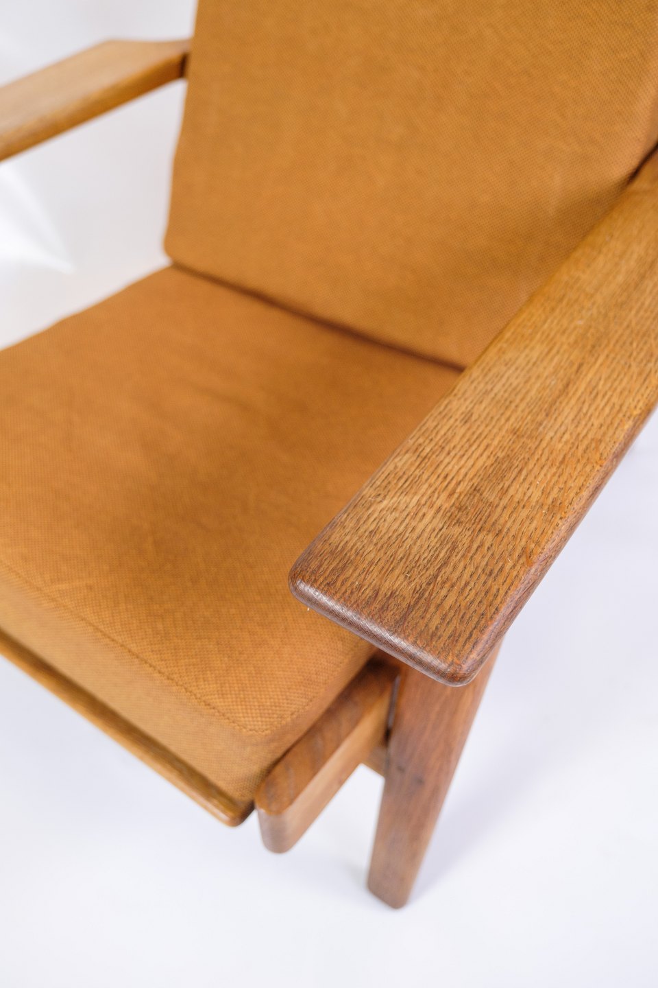 Please contact us for price informationThis armchair, model GE290A with high back, designed by Hans J. Wegner and manufactured by Getama in the 1960s, is an excellent example of Danish mid-century modern design. The chair combines solid oak with yellow fabric, creating an elegant and comfortable piece of furniture that reflects Wegner's unique design philosophy and craftsmanship.