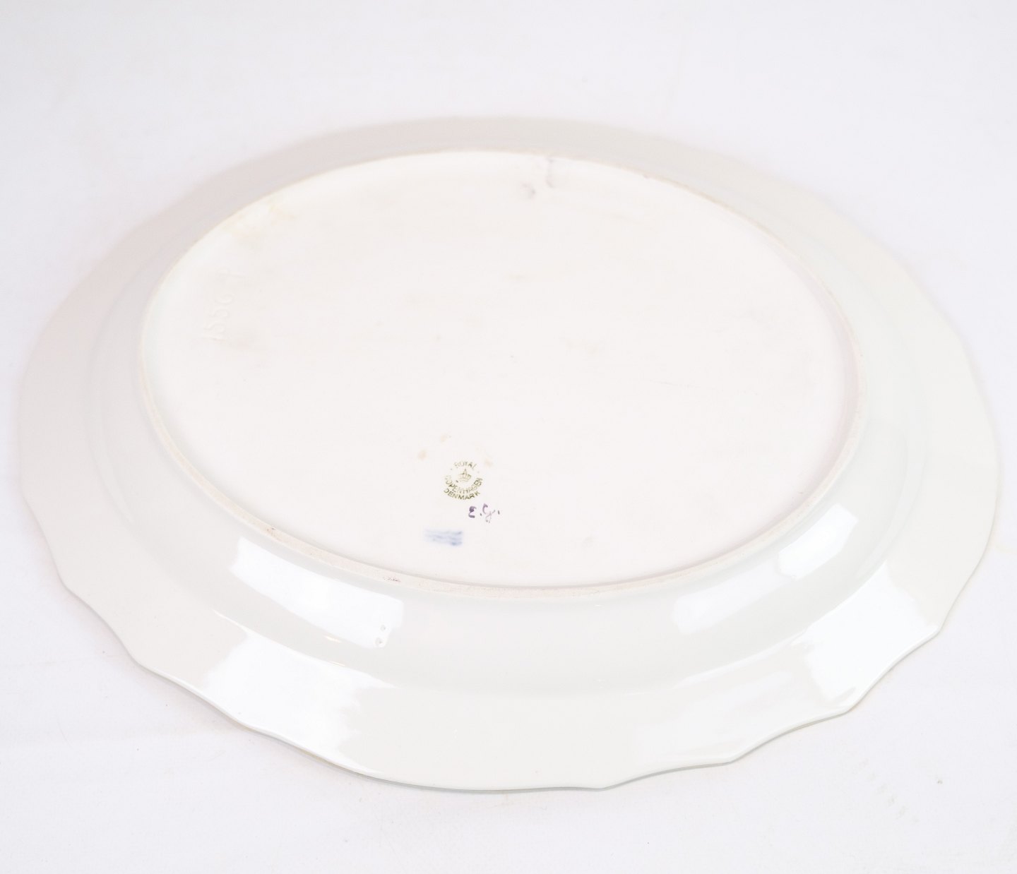 Dish of Royal porcelain with patterned Saxon flower decorated on the edge with gold. Manufactured by Royal Copenhagen in approx. 1923, where all their goods have been hand painted and subsequently become very rare. The dish is without flaws or defects.