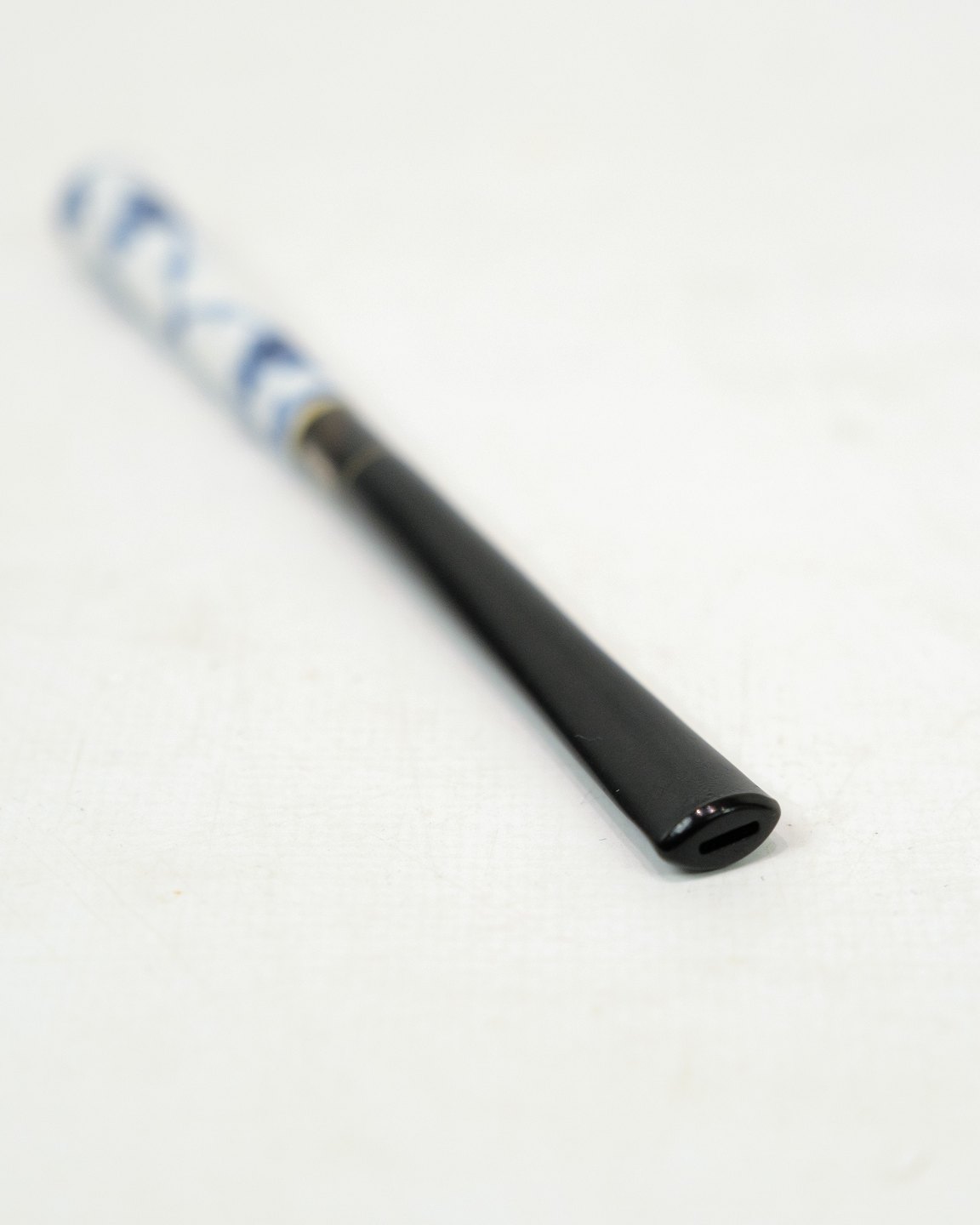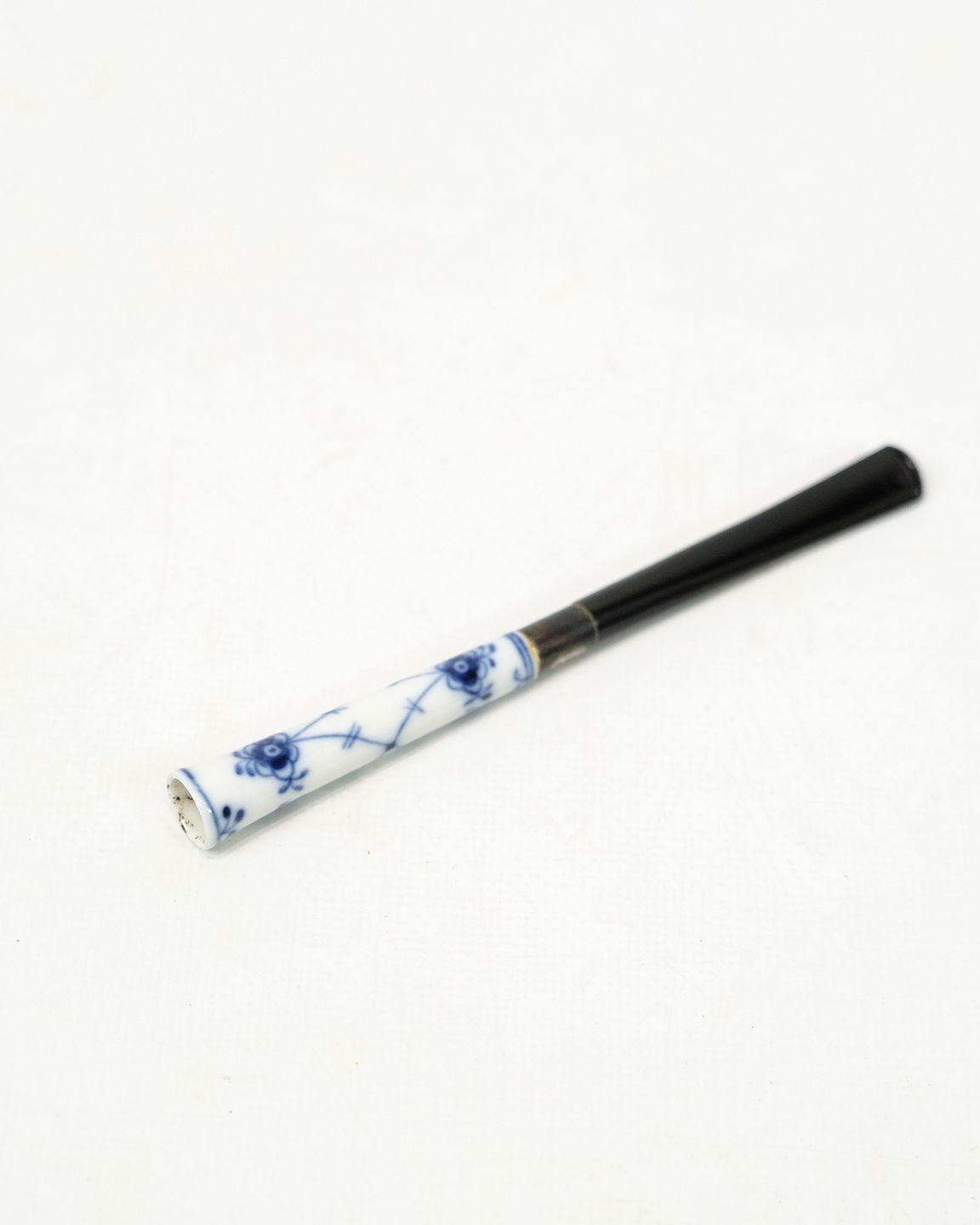 SolgtSjældent Cigaretrør i mønstret musselmalet riflet med en sølv montering. Perfekt stand uden skader.