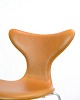 Sæt af 4 spisestuestole, model 3108 Lilje/Mågen, designet af Arne Jacobsen og produceret af Fritz Hansen i 1970'erne. Stolene er udført i et elegant design med blødt, formpresset træ, polstret i Cognac Elegance læder, der giver en kombination af komfort og holdbarhed.