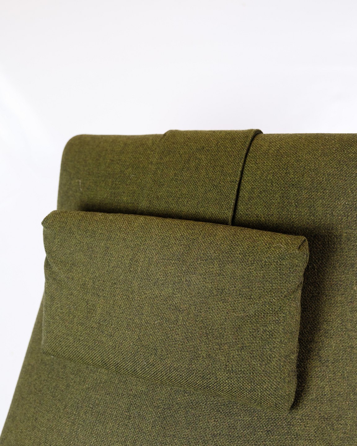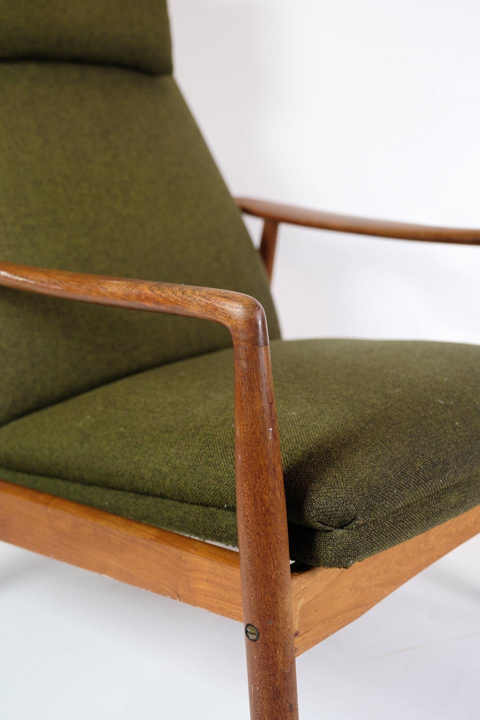 Sæt af 2 lænestole med skammel i teak og grønt stof, designet af Alf Svensson og produceret af Fritz Hansen i 1960'erne.