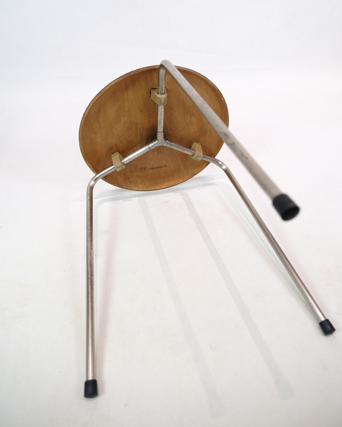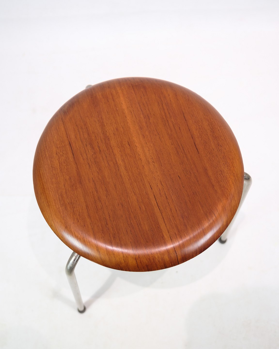 SoldSet of 2 Dot stools, model 3170, designed by Arne Jacobsen and produced by Fritz Hansen in the 1950s. The stools are made of teak, which gives them a warm and classic look. The Dot stool is an example of Jacobsen's minimalist and functional design style.
