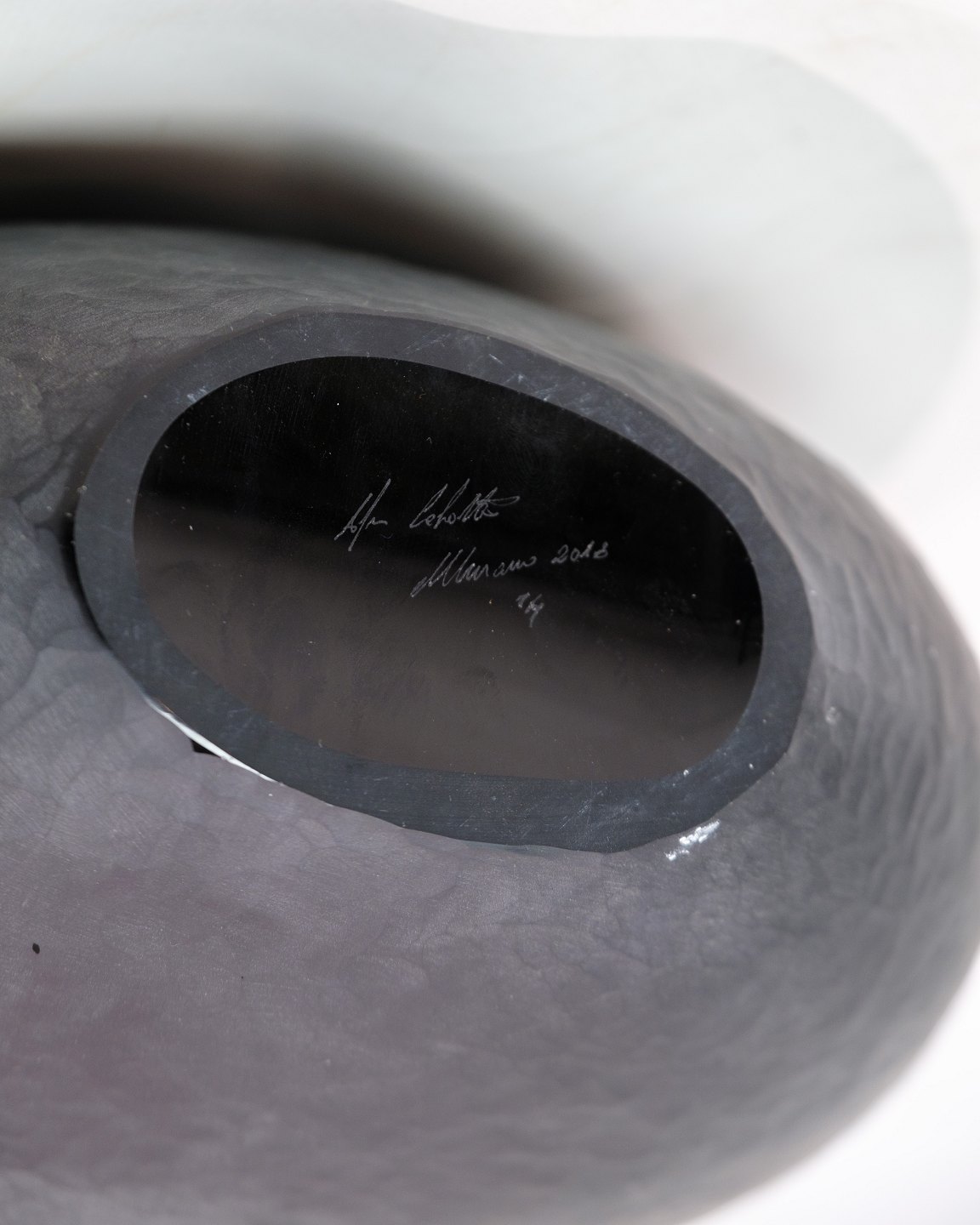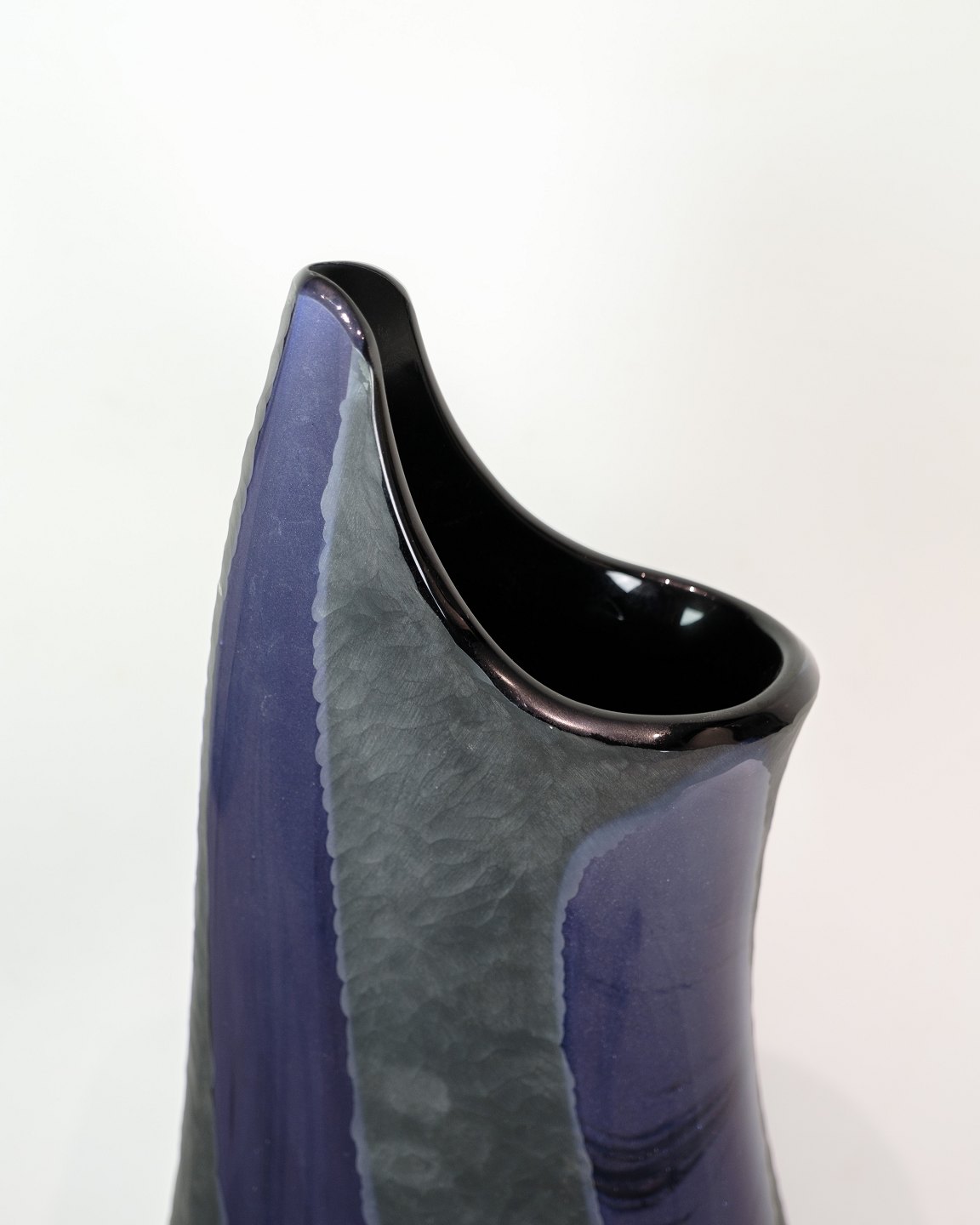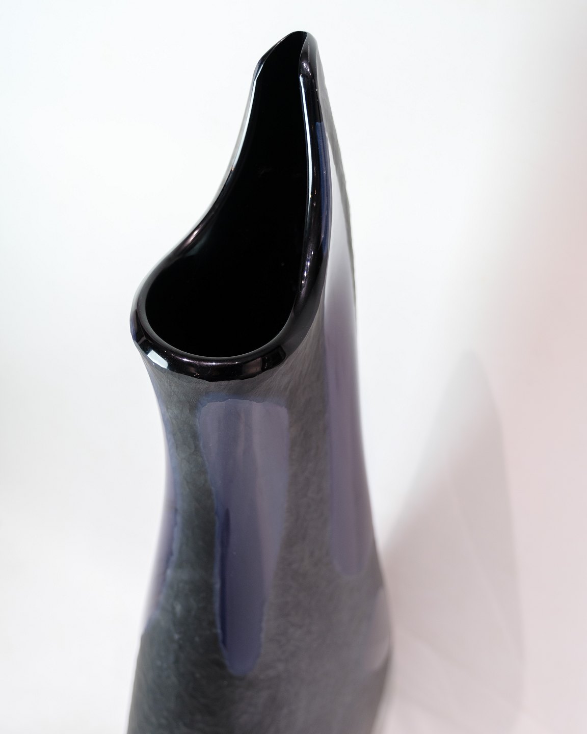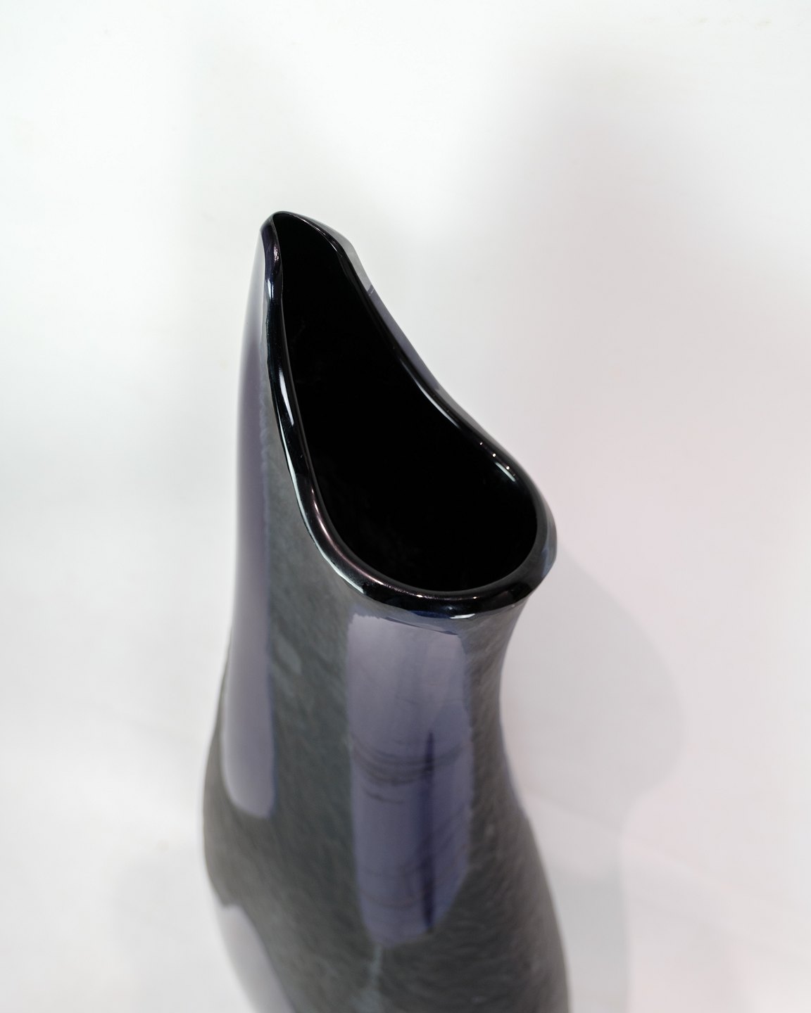 Unika vase designet af Elio Raffaeli i 2018 på Murano, kendt for sine glasværker. Vasen, der er i mørkelilla, viser Raffaelis mesterlige evne til at arbejde med farver og former i glas, hvilket gør den til et unikt samlerobjekt.