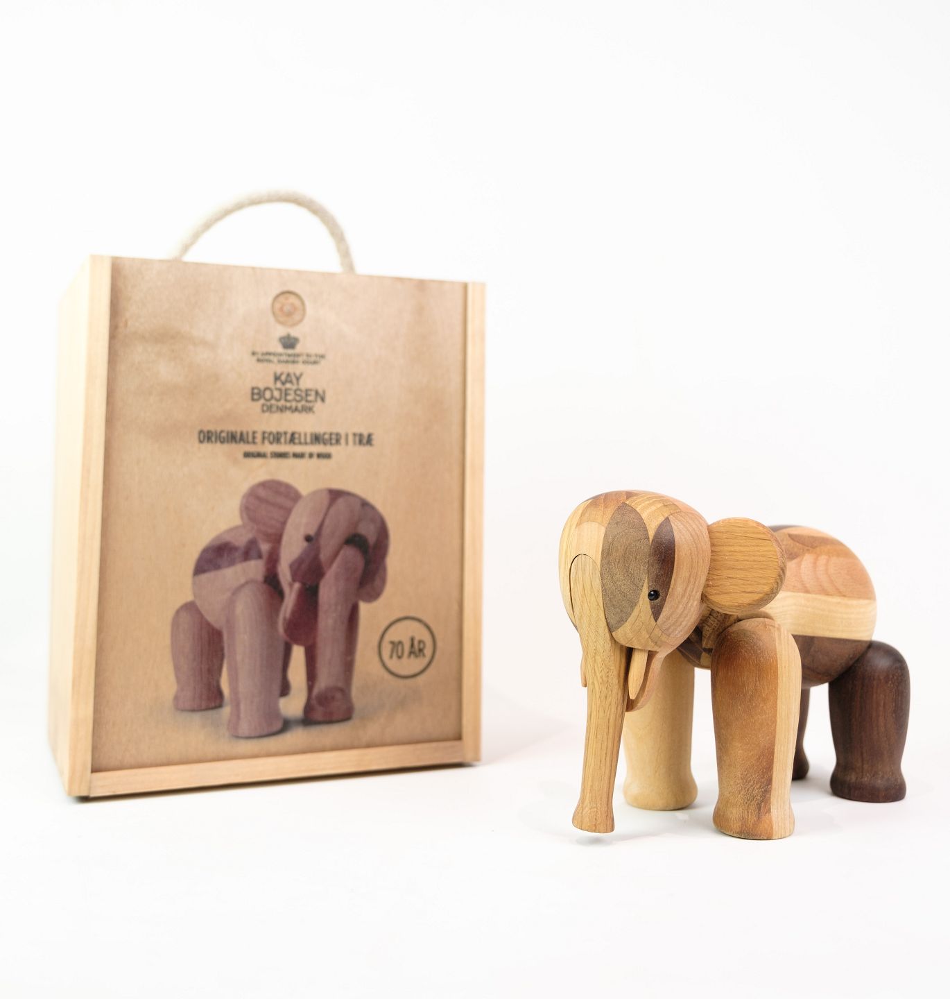 Little Elephant reworked by Kay Bojesen, released for the 70th anniversary, is a special edition of the iconic wooden figure. Kay Bojesen began his career as a silversmith under Georg Jensen but became especially known for his wooden animals, including the famous monkey from 1951. His wooden toys combined simplicity with quality, designed with a focus on functionality and durability. Bojesen believed that design should be accessible to all, creating figures that could bring joy to both children and adults.