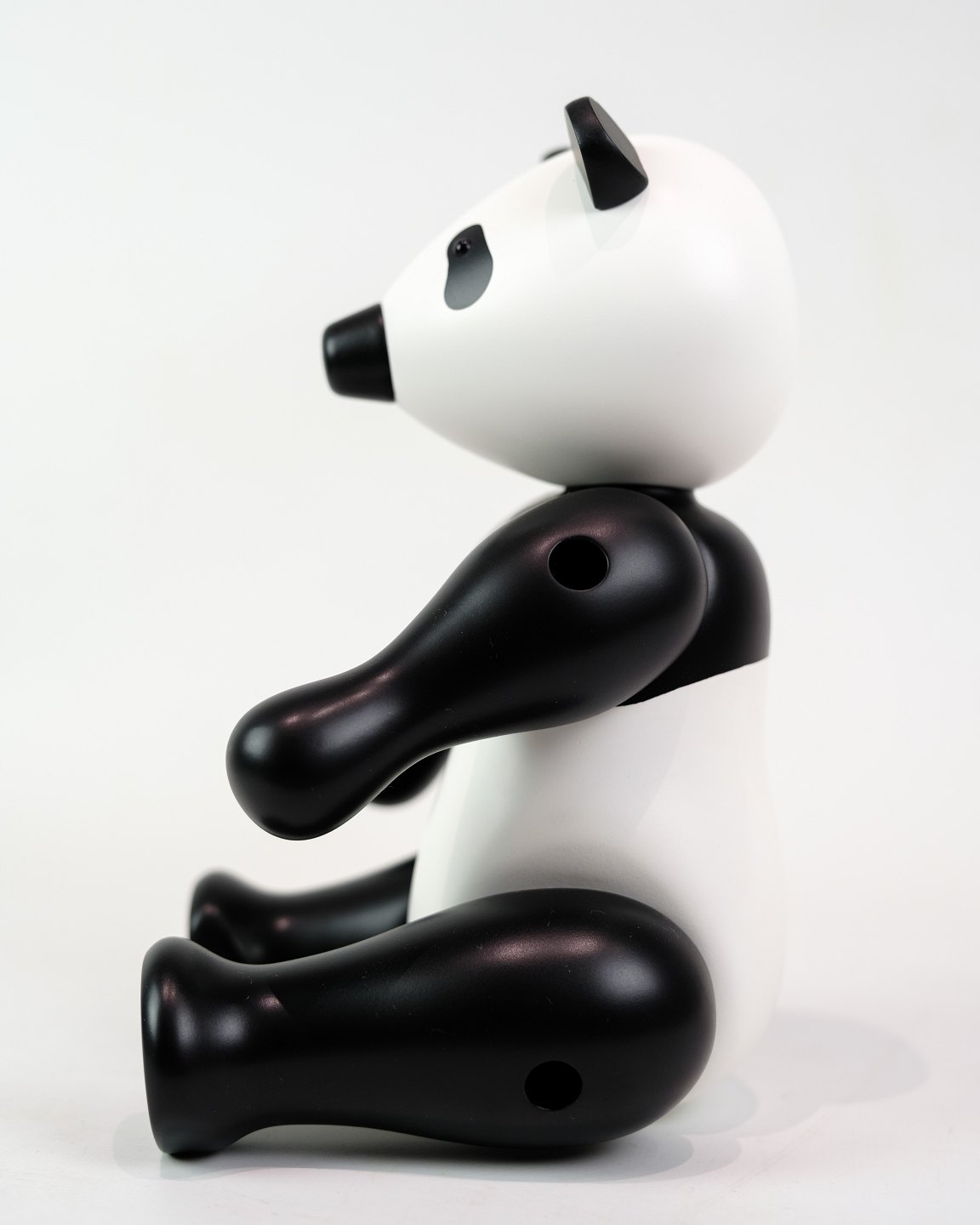 Kay Bojesen begyndte sin karriere som sølvsmed under Georg Jensen, men blev kendt for sine træfigurer, der forener legetøj og kunsthåndværk. Den mellemstore pandabjørn er udført i bæredygtigt malet træ og afspejler Bojesens evne til at skabe figurer, der appellerer til både børn og voksne. Figuren er inspireret af den panda, som blev doneret til København Zoo, og den kombinerer det karakteristiske design med en hyldest til naturen og dyrelivet.