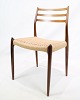 Niels Otto Møller (1920-1982) was a Danish designer and cabinet maker who founded J.L. Møllers Møbelfabrik in 1944. His designs are known for their focus on quality and craftsmanship, and especially his dining table chairs, such as model 78, have been recognized internationally for their elegance and use of natural materials such as rosewood and teak. Møller's furniture remains popular today and is considered an important part of Danish design heritage.