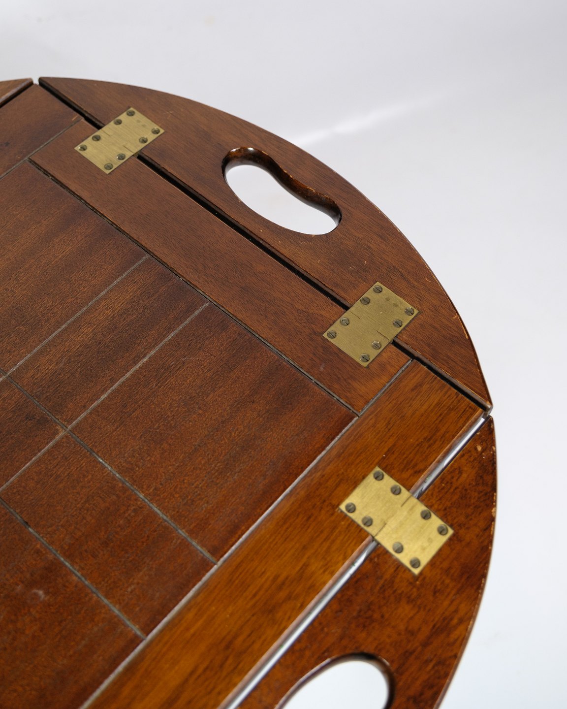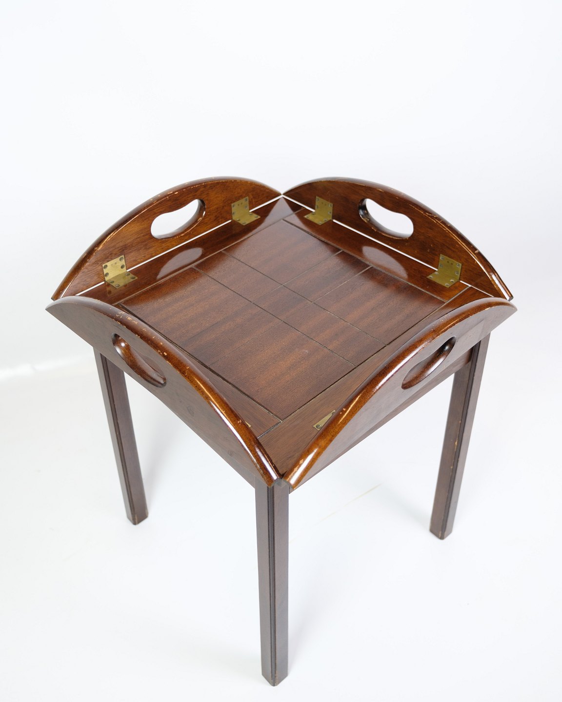 Butler's table made of mahogany from the 1960s. The table is made of solid mahogany, which gives it a warm glow and durability. Butler's tables were popular during this period because of their versatility - they can easily be used as a serving table or side table and often have a removable tray or handle, making them easy to move around.