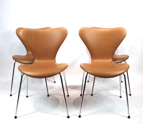 Set of 6 dining chairs, model Rungstedlund, designed by Ole Wanscher and manufactured by P. Jeppesen in the 1960s. The chairs are made of mahogany and upholstered with light fabric, which gives them a classic and stylish expression.