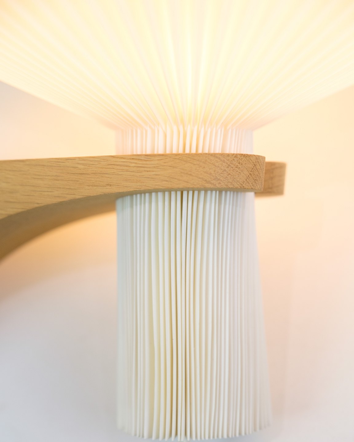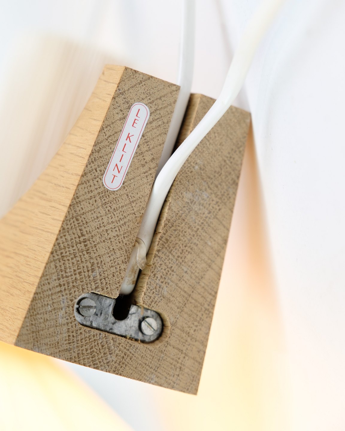 SolgtVæglampe i lys egetræ, designet af Vilhelm Wohlert og fremstillet af Le Klint. Væglampen er model 204 og har et meget enkelt og minimalistisk design. Det er en eftertragtet model og kan ses i vores udstilling.