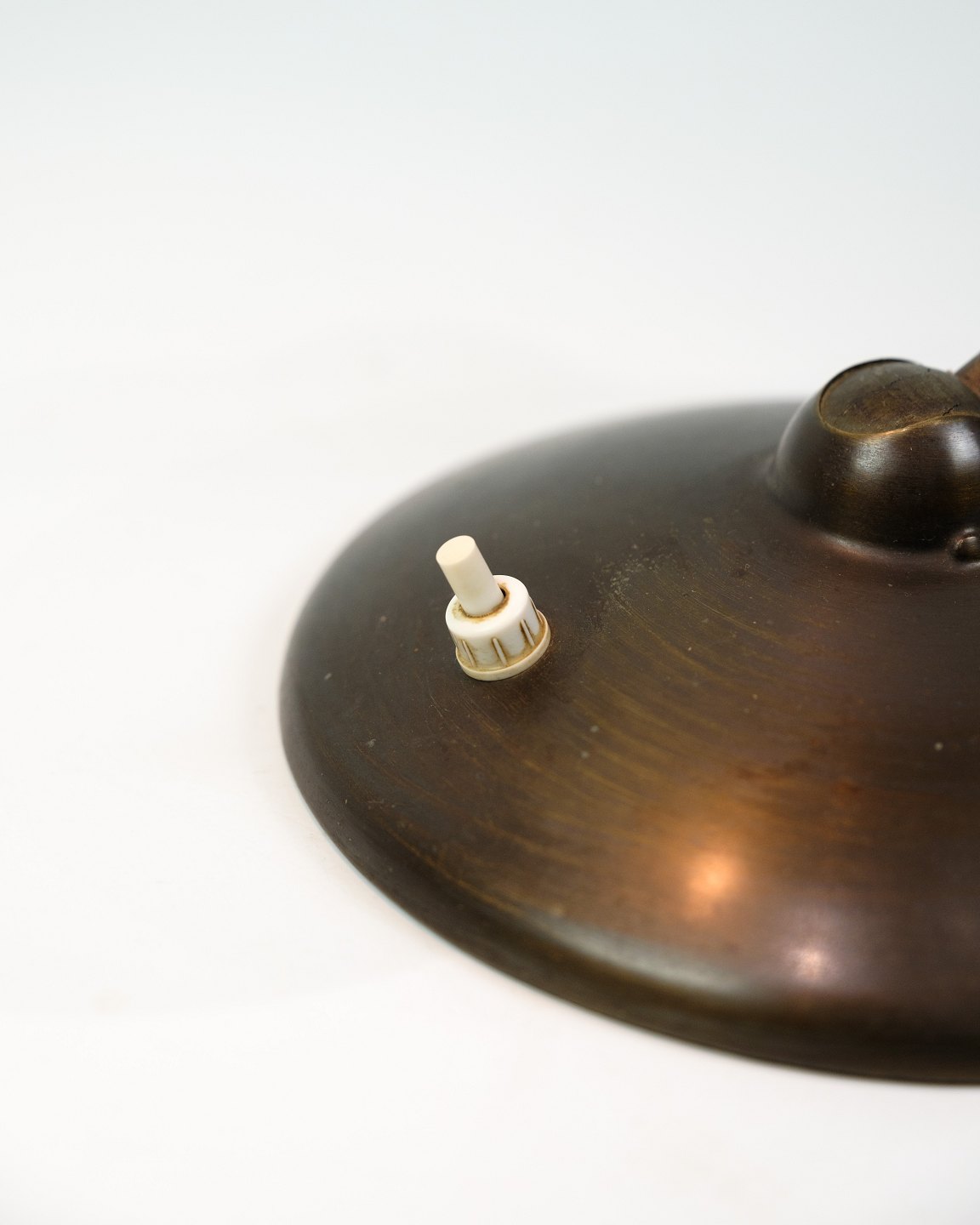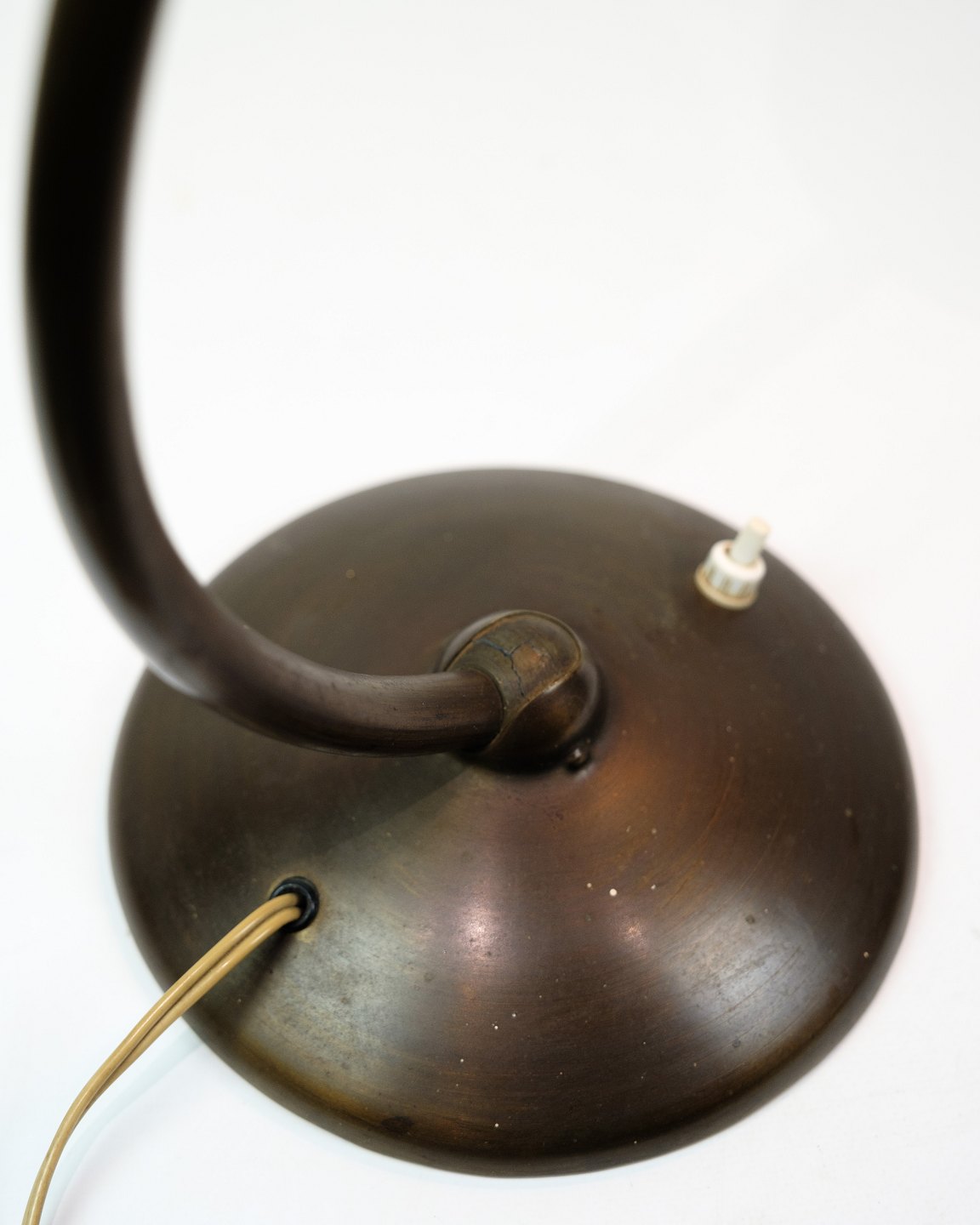 Table lamp made of burnished brass, probably from around 1940-1950. The lamp will be inspected in the workshop before sale. We have the option of changing the cord to a brown fabric cord if desired.
