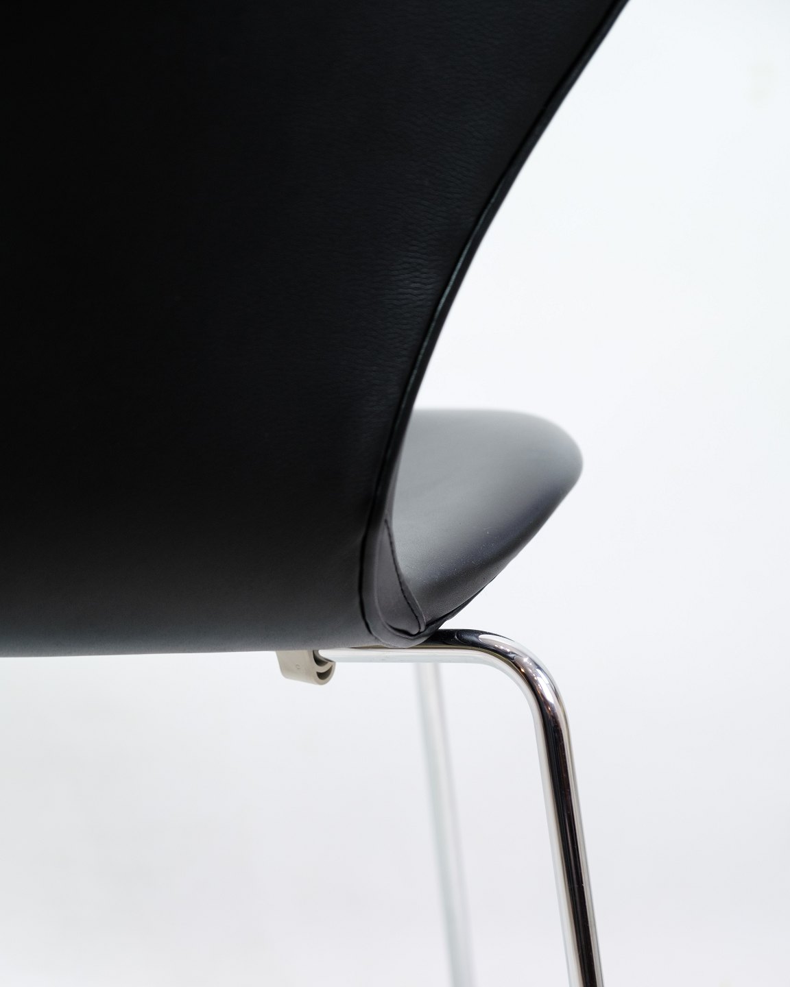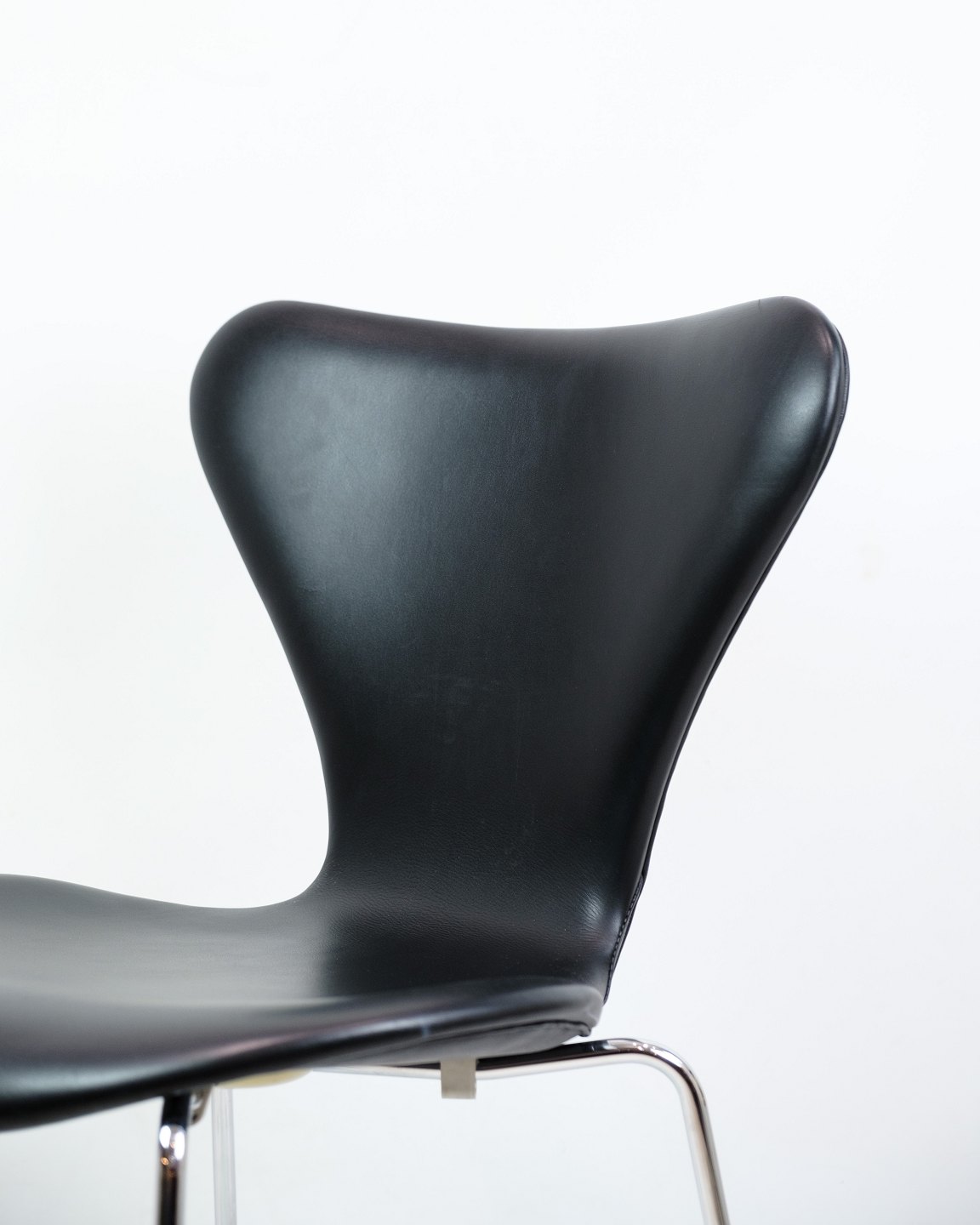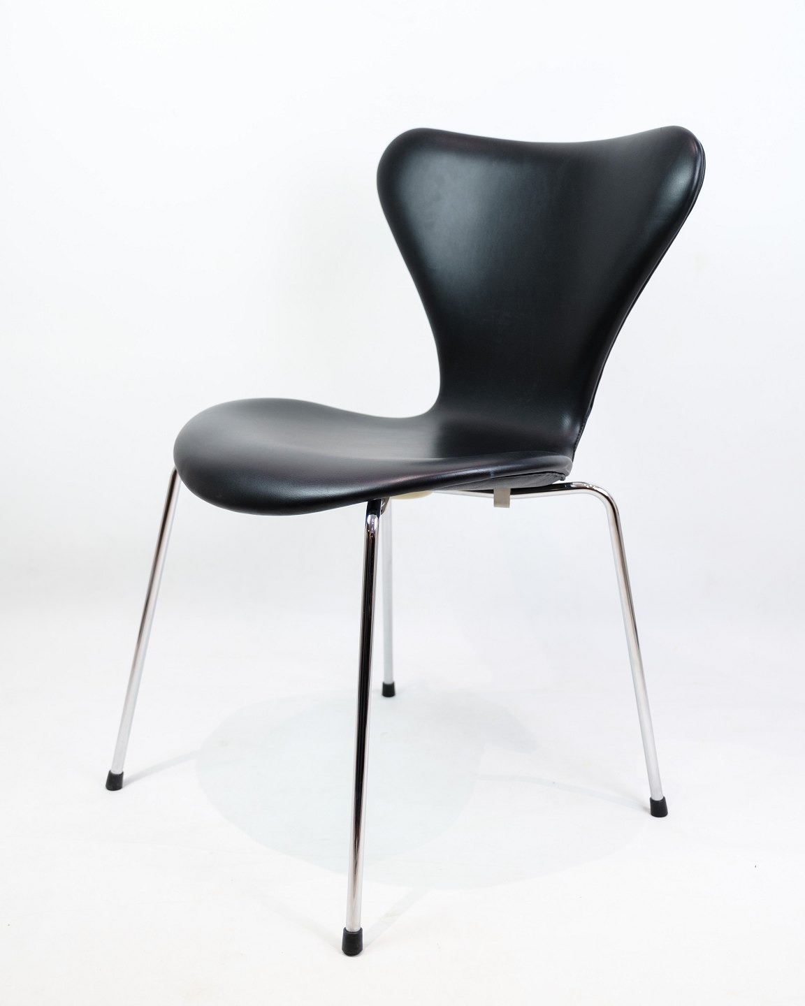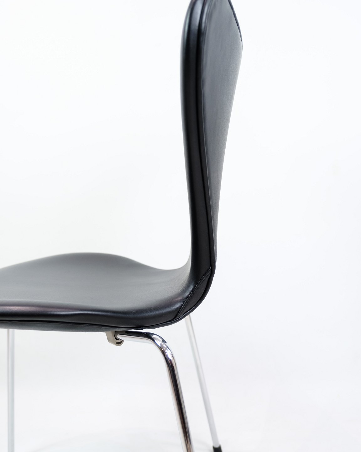 Sæt Af 4 Syverstole - Sjælden - Model 3107 - Polstreret I Sort Læder - Arne Jacobsen - Fritz Hansen - 1980erne