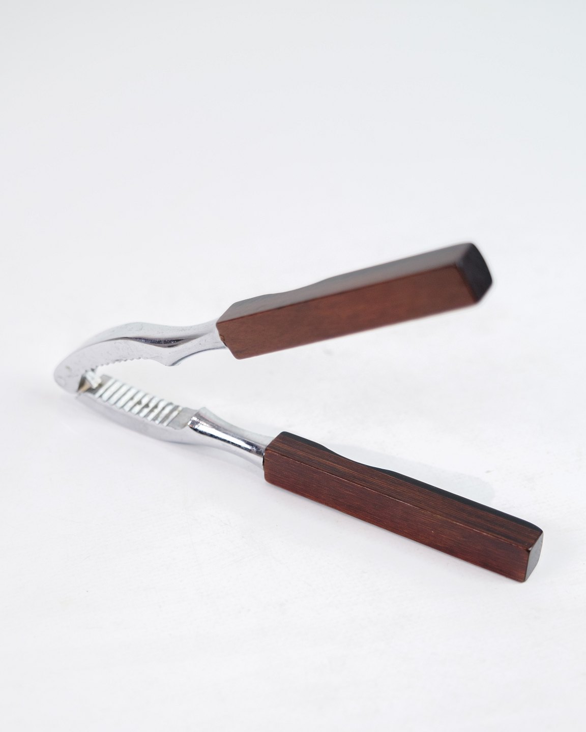 Denne nøddeknækker er et klassisk eksempel på dansk design, hvor funktionalitet og æstetik går hånd i hånd. Den er fremstillet med et greb i palisandertræ, som tilføjer varme og elegance, kombineret med holdbart stål, der sikrer effektiv anvendelse. Nøddeknækkeren er et praktisk redskab, der samtidig fungerer som et dekorativt element i køkkenet eller på bordet.