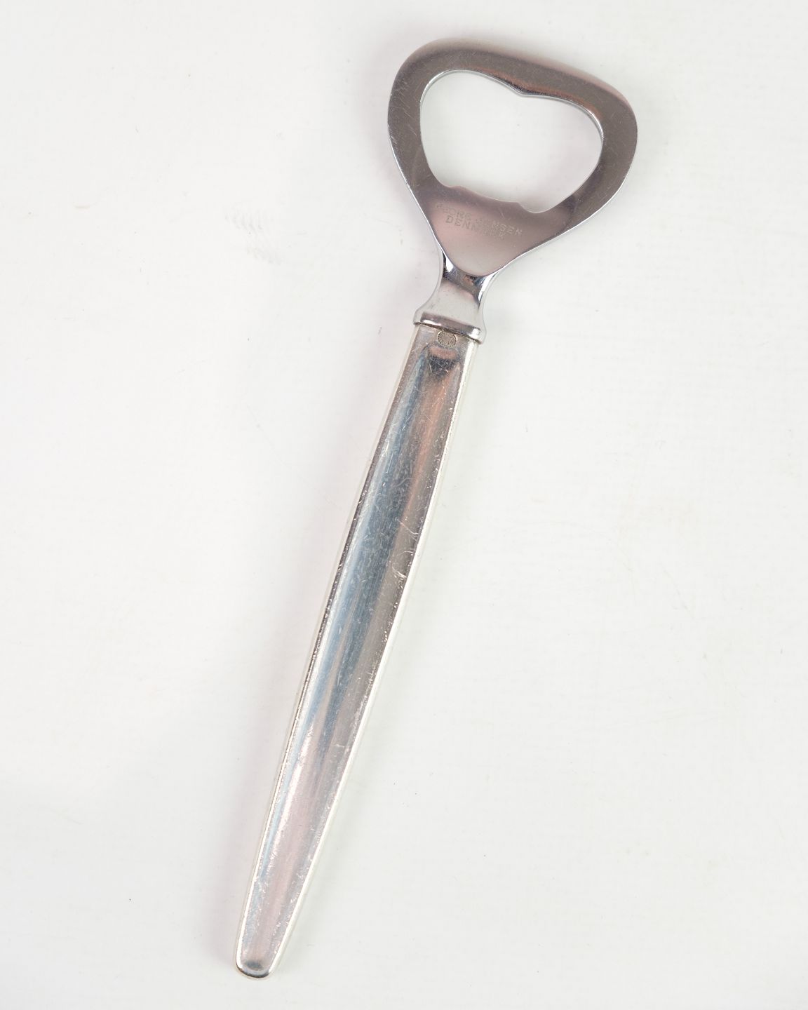 Bottle opener model 272 in sterling silver. The bottle opener is part of the Cypres Series which is designed by Tias Eckhoff and manufactured by Georg Jensen.The Cypres series is known for its simple design that reflects Scandinavian minimalism.