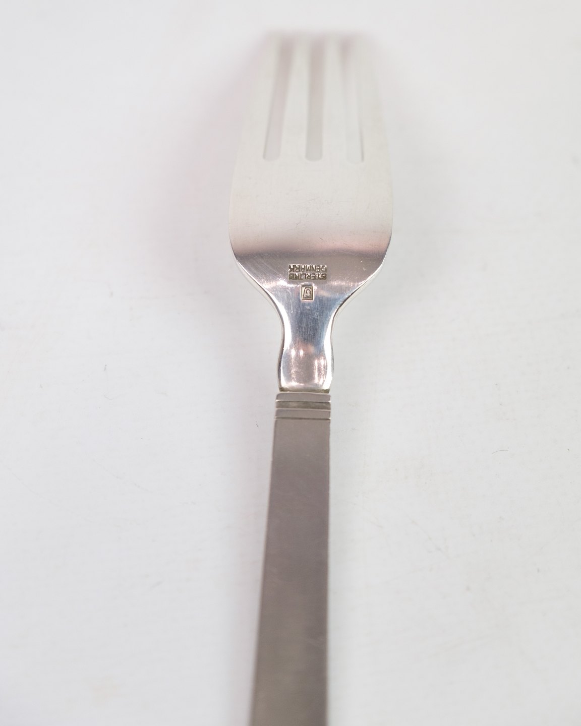 This dinner fork is part of Georg Jensen's "Blok" cutlery series, designed by Just Andersen in 1934. Made of sterling silver (925), the fork is characterized by its simple and functional design, typical of Scandinavian modernism. The "Blok" series is known for its clean lines and timeless aesthetics, making it suitable for both everyday use and formal occasions.