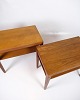 SolgtSæt af 2 sideborde i teak med hylde, designet af Severin Hansen og produceret af Haslev Møbelfabrik i 1960'erne. Bordene har det karakteristiske og præcise snedkerarbejde, som Hansen er kendt for, herunder de smukke, skrå benforbindelser, der elegant møder bordpladen. Den ekstra hylde giver praktisk opbevaringsplads og gør bordene anvendelige både som sideborde og små sofaborde.