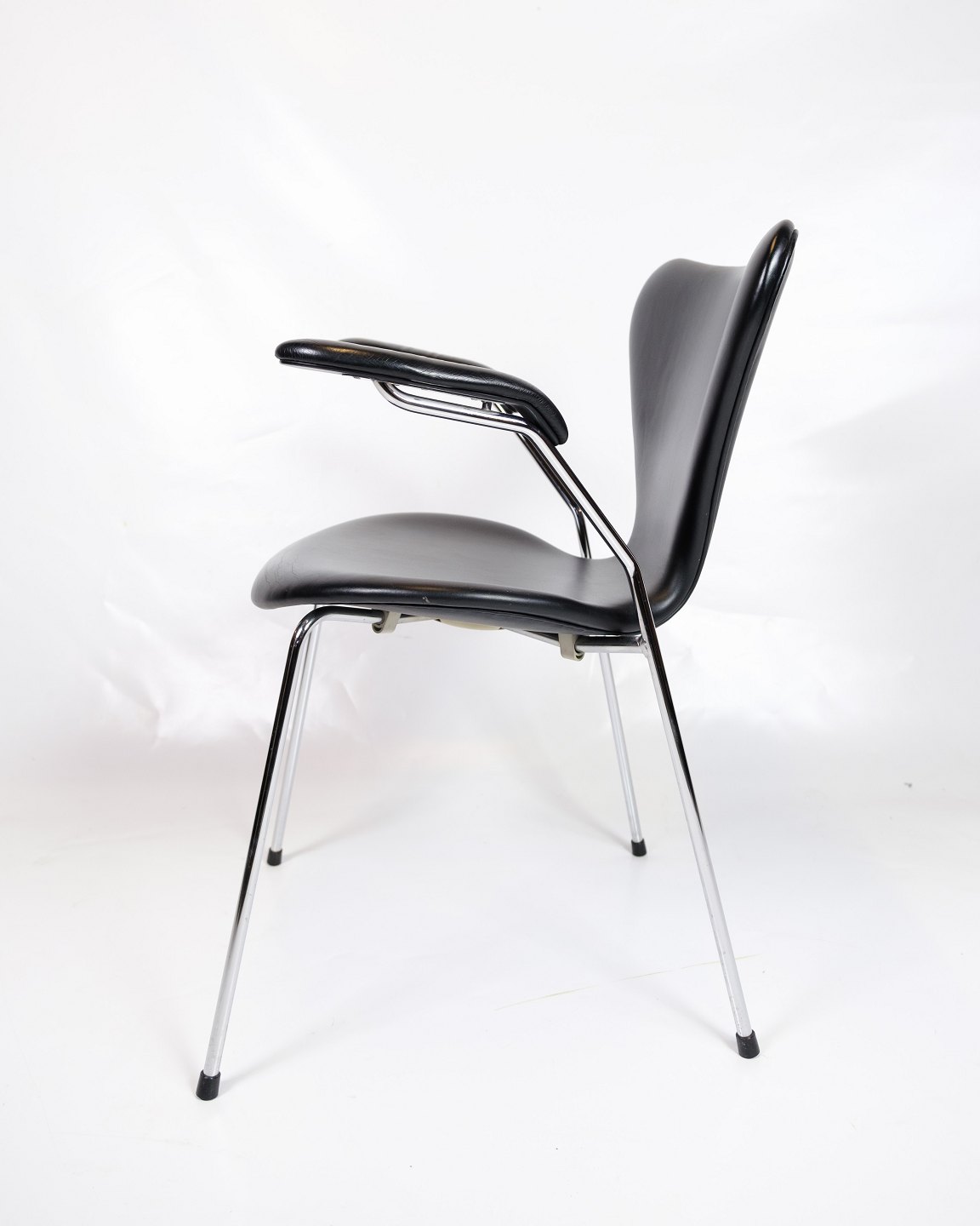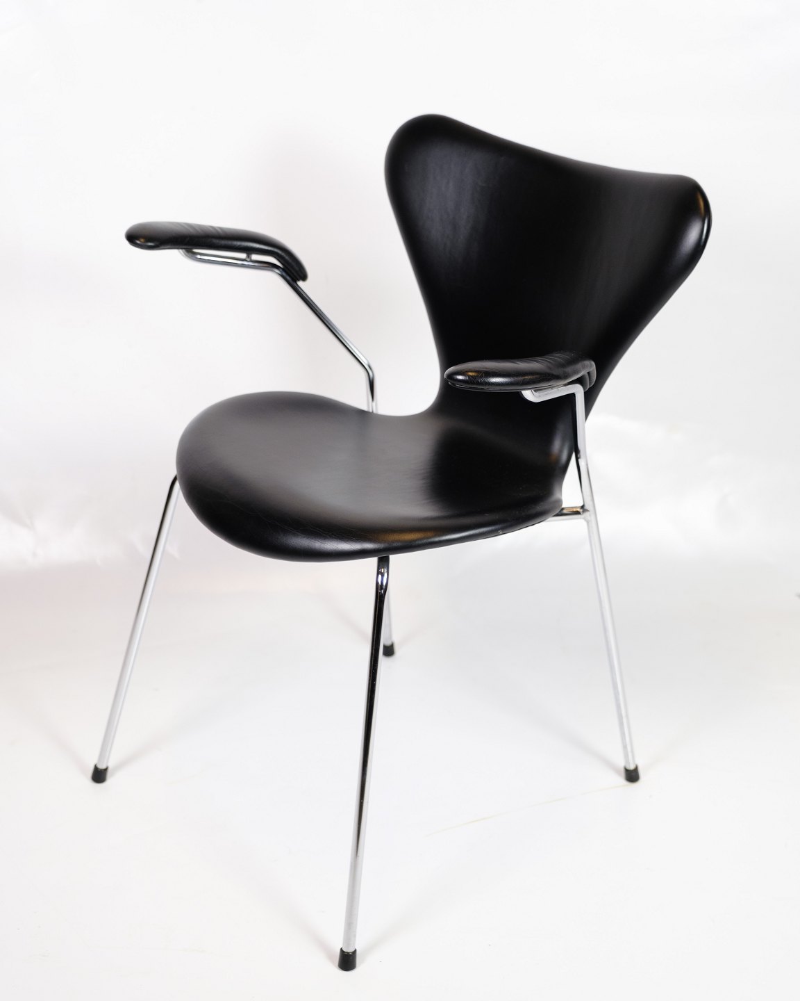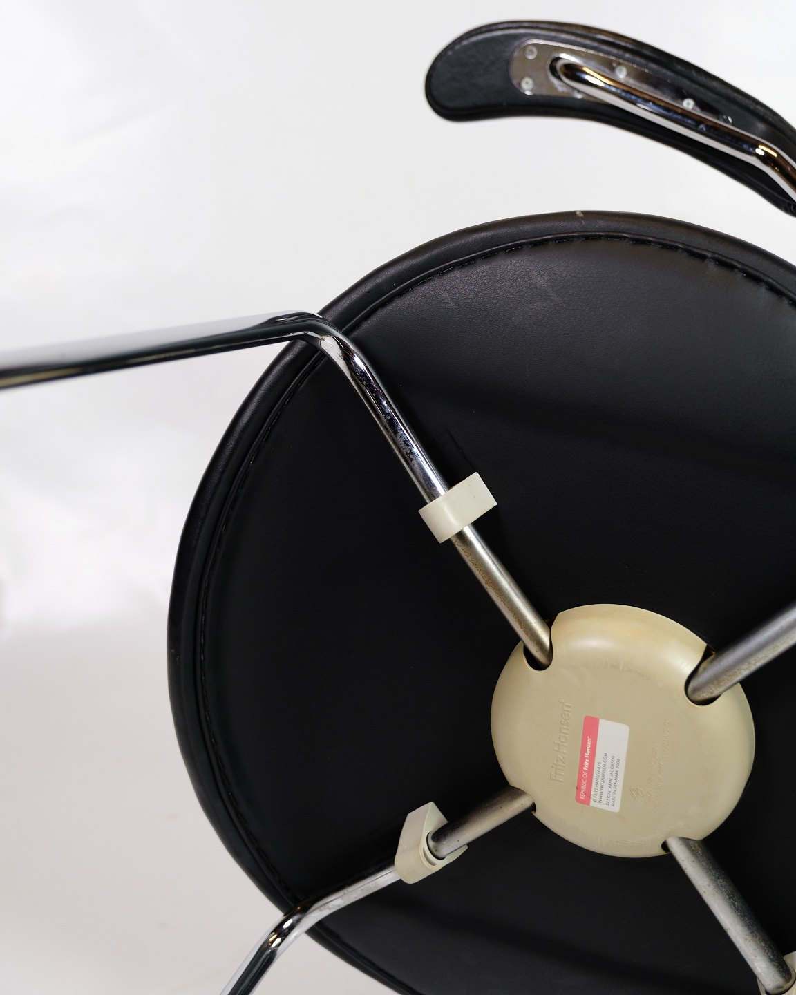 Syver stol med Arme - Model 3207 - Sort læder - Arne Jacobsen - Fritz Hansen