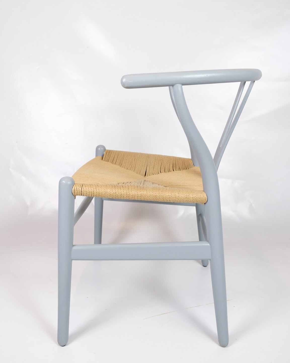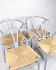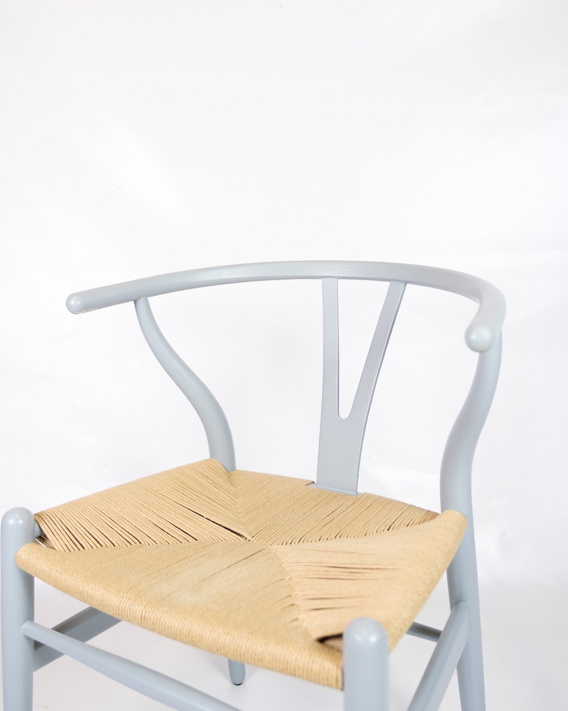 SoldSet of 4 Wishbone chairs, model CH24, designed by Hans J. Wegner and produced by Carl Hansen & Søn. The chairs are painted in a grey colour, which adds a modern expression to the classic design. The wishbone chair, was designed in 1949 and has been in production since 1950.