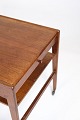 Sidebord i teak fra 1960'erne, udført i dansk design. Bordet er monteret med hjul, der gør det let at flytte rundt, og har både indbyggede skuffer og en lille hylde, hvilket giver praktisk opbevaringsplads. Designet kombinerer funktionalitet og æstetik, hvilket gør det anvendeligt som både et sidebord og en fleksibel opbevaringsløsning.
