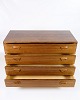 Kommode med 4 skuffer og runde ben. Udført i palisander fra 1960erne og designet af Kai Kristiansen. Kai Kristiansens design er kendt for sit fokus på funktionalitet, enkelhed og den håndværksmæssige kvalitet af møblet.