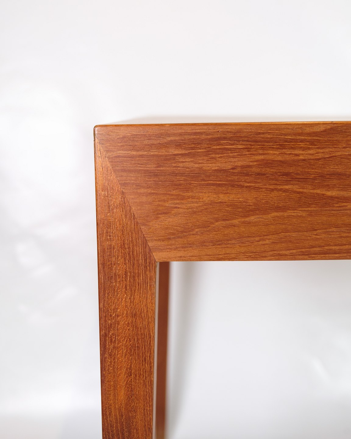 SolgtSkrivebord i teak, designet af Severin Hansen og produceret af Haslev Møbelfabrik i 1960'erne. Bordet er udført i smukt teaktræ, kendt for dets rige farve. Med sit enkle og elegante design er dette skrivebord et tidløst eksempel på dansk møbelkunst fra midten af det 20. århundrede.
