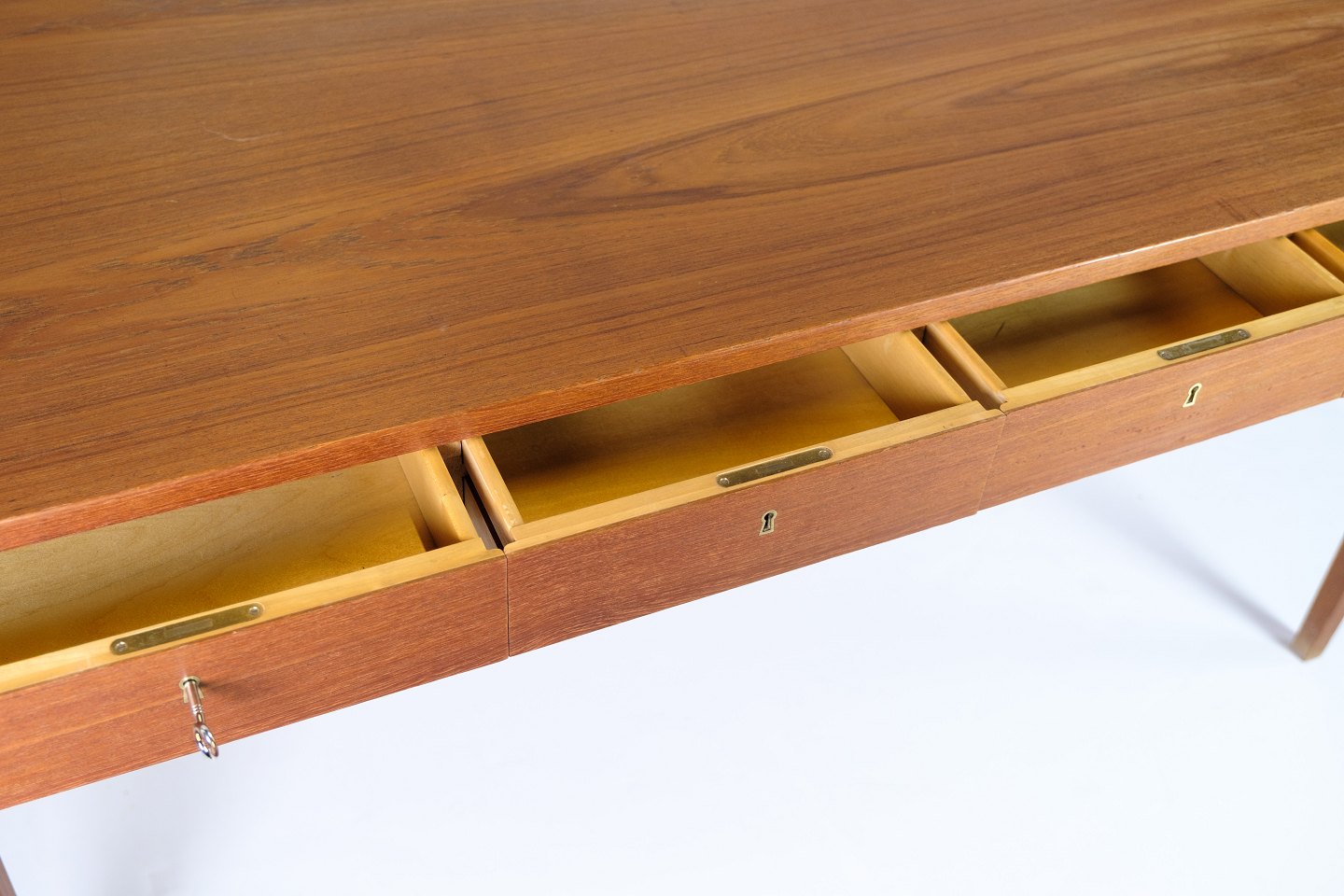 Haslev Møbelfabrik var kendt for deres håndværksmæssige dygtighed og brug af kvalitetsmaterialer, og dette skrivebord er ingen undtagelse. Hvert stykke træ er omhyggeligt udvalgt og bearbejdet for at sikre en fejlfri finish og lang levetid.