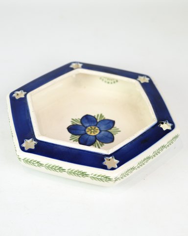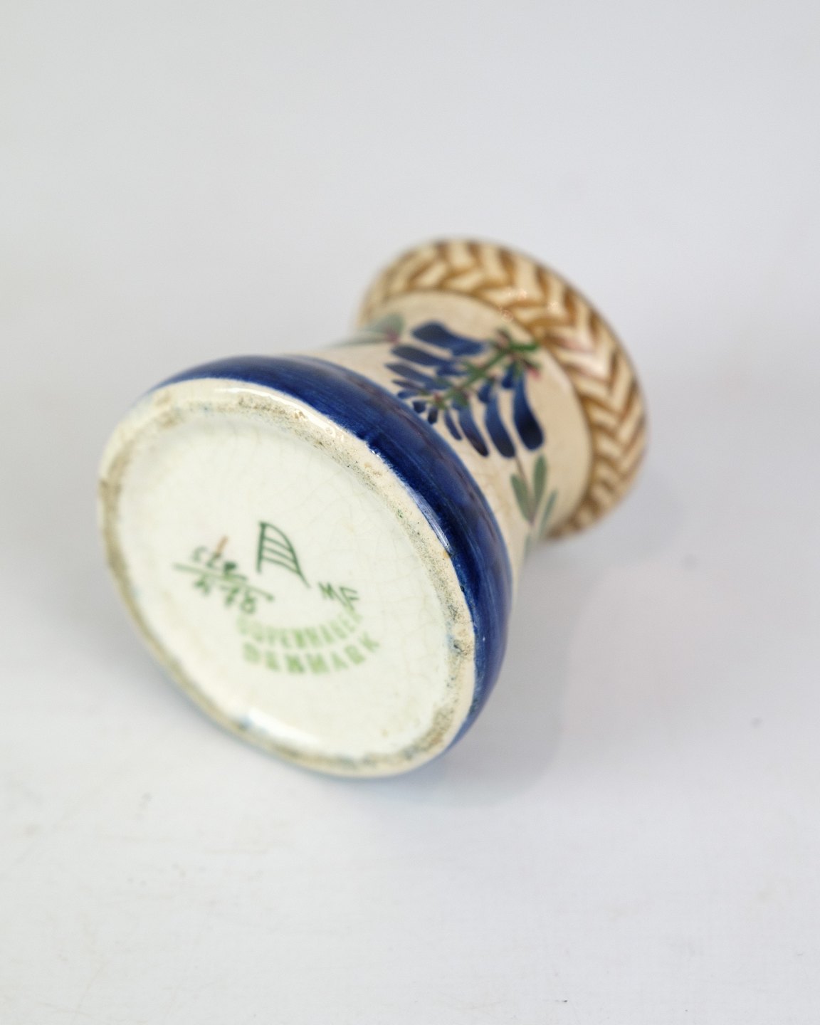 Denne lysestage, model 522/578, er fremstillet i fajance og smukt håndmalet med fine detaljer. Dens klassiske design og kunstneriske udførelse gør den til en dekorativ og funktionel genstand, der skaber en hyggelig atmosfære i hjemmet.