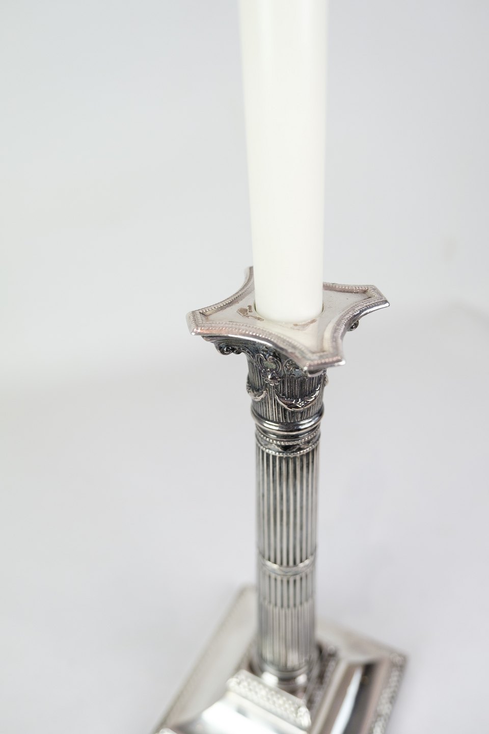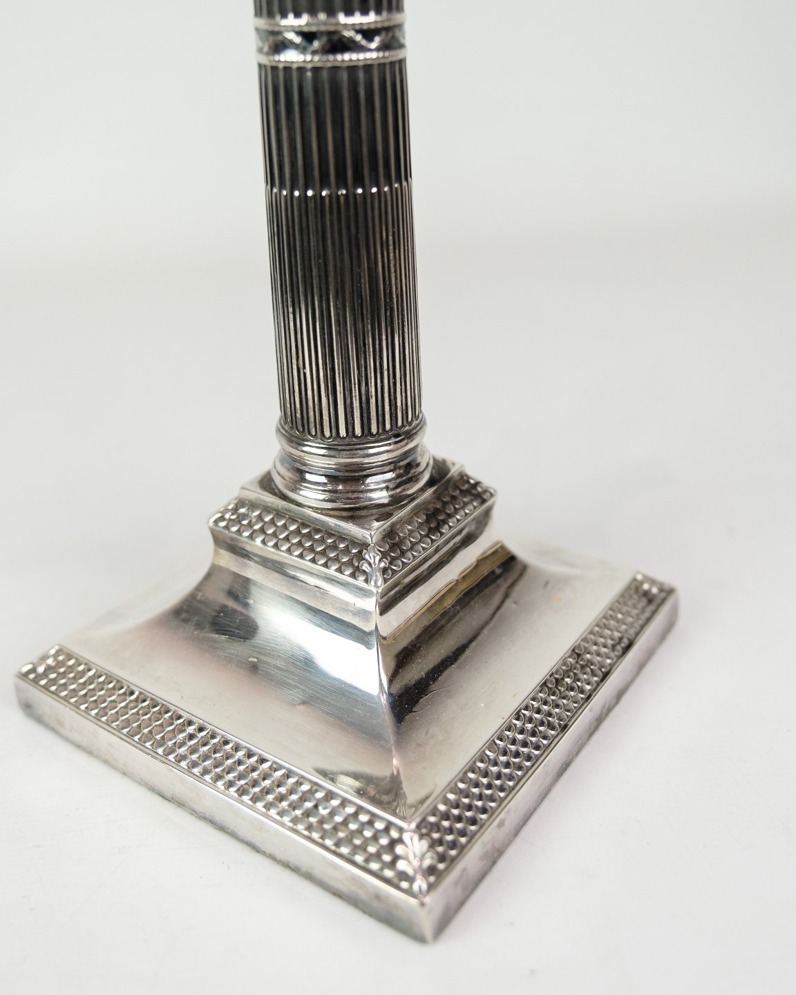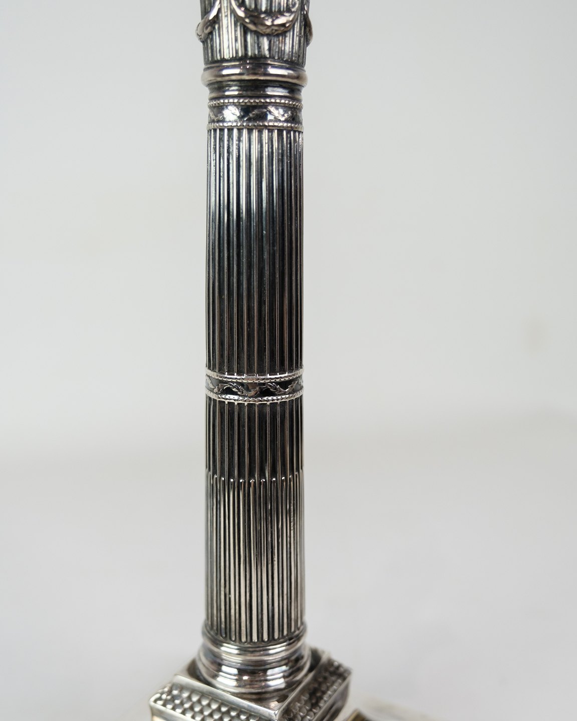 Sæt af 2 lysestager fremstillet i sterling sølv 925, designet i Louis seize-stil. Lysestagerne er dekoreret med en elegant perlekant. Engelsk oprindelse fra 1920erne.