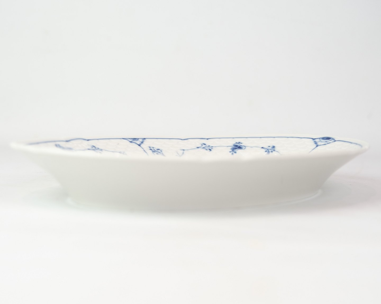 Oval dish no. 18 from Bing & Grondahl. Made of porcelain with classic blue fluting design in hand-painted blue decoration.