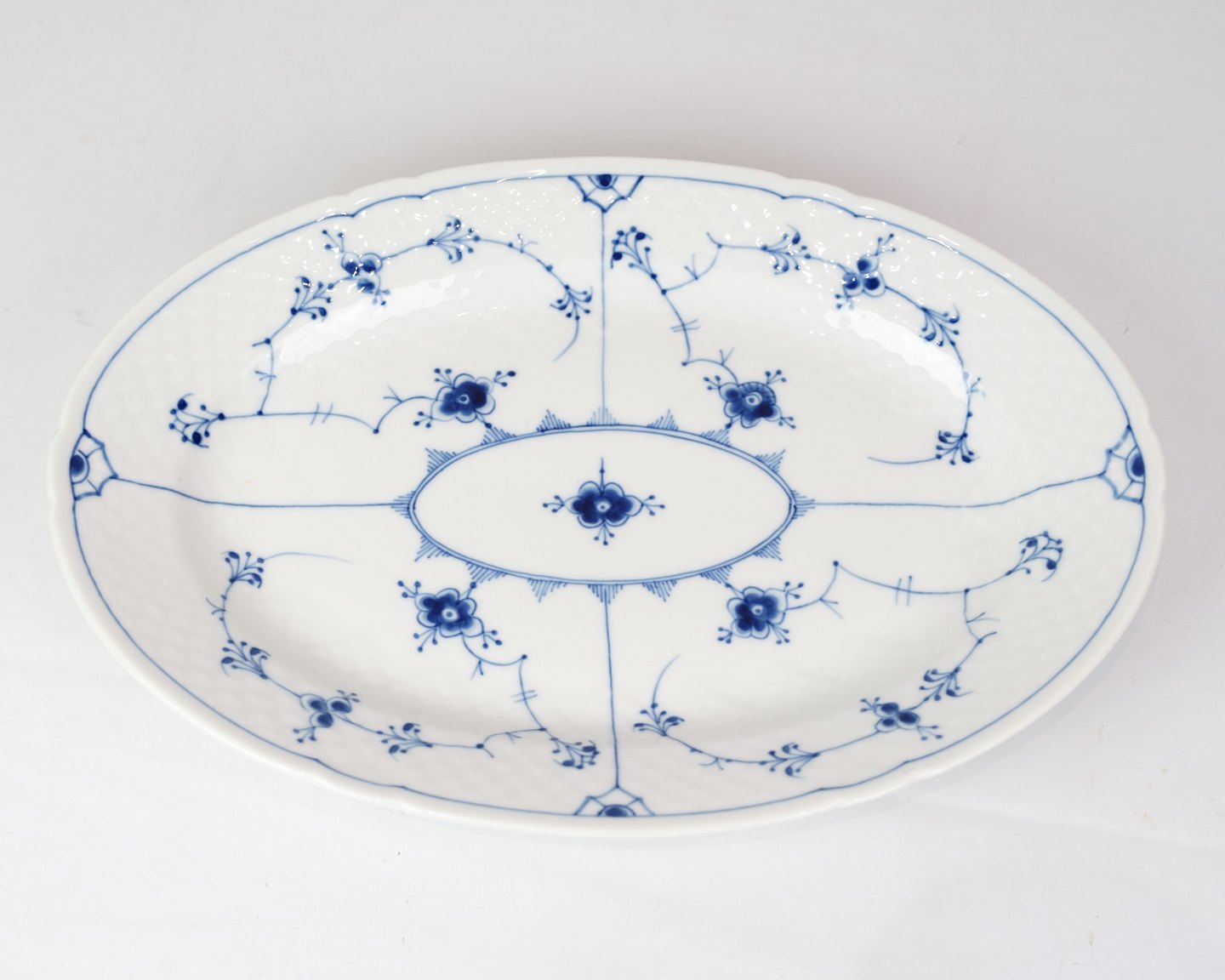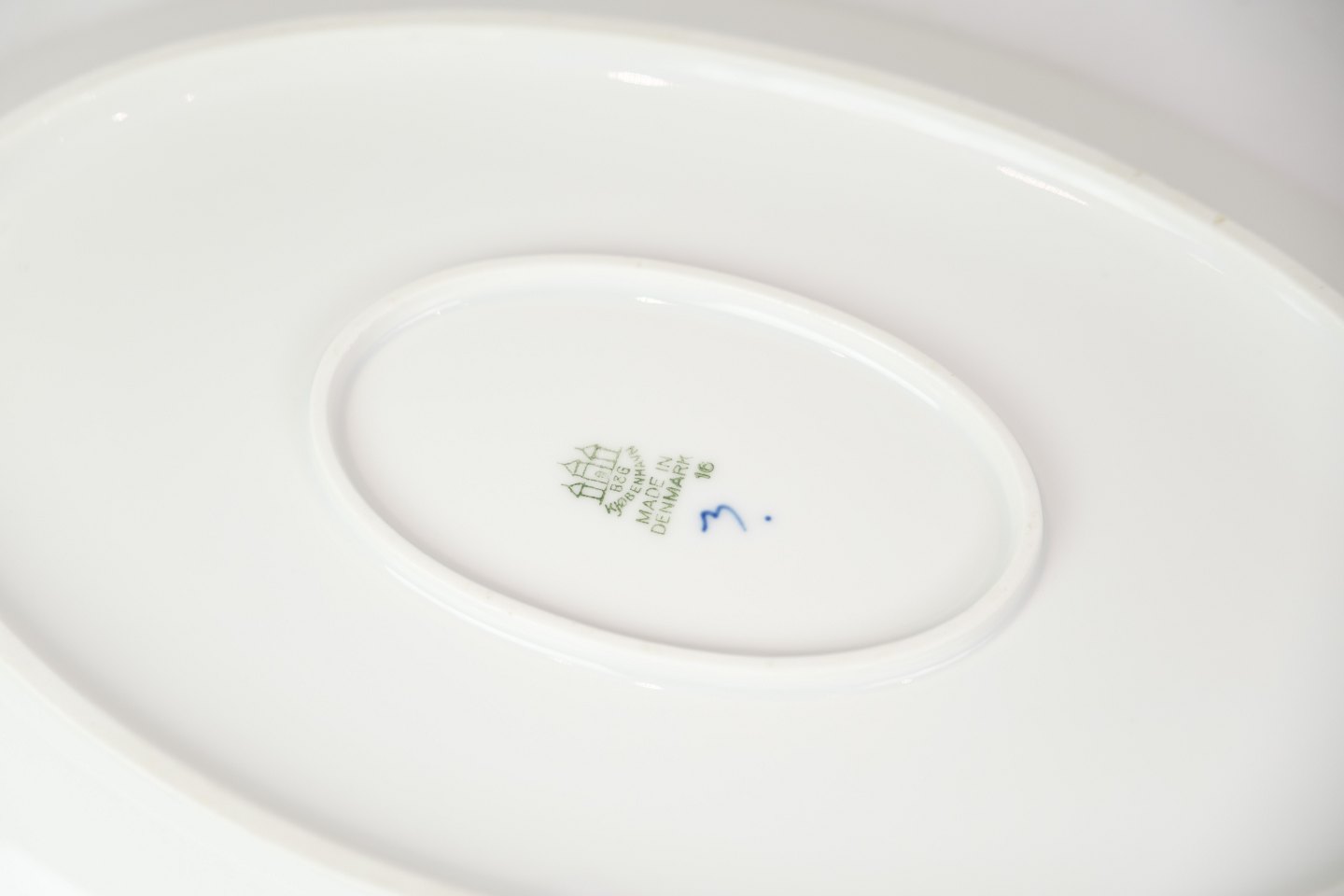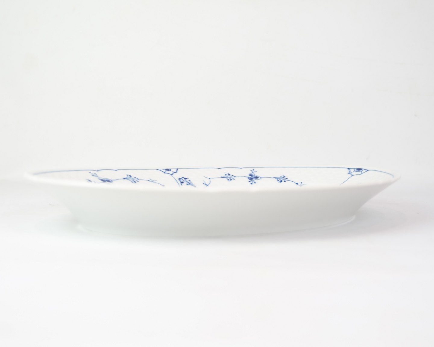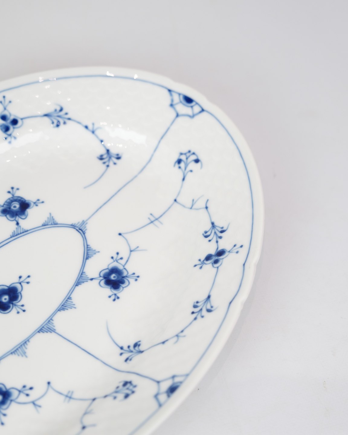 Ovalt Fad nr. 16 fra Bing & Grøndahl. Fremstillet af porcelæn med klassisk musselmalet design i håndmalet blå dekoration.